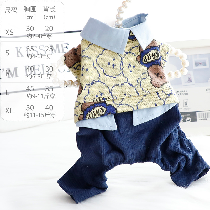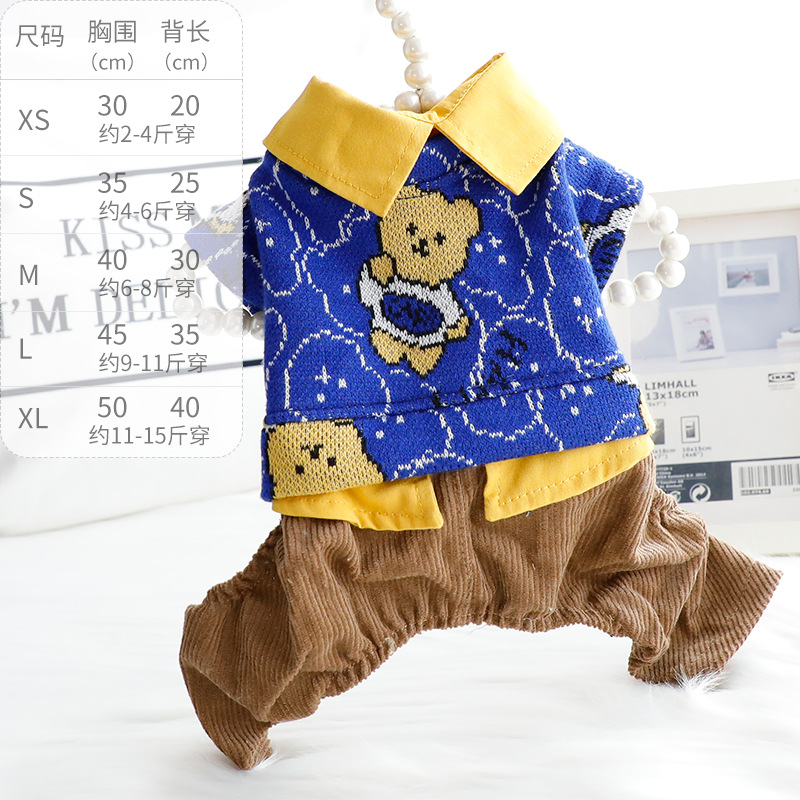 개 옷 봄과 가을 셔츠 가짜 2 피스 4 다리 바지 도매 니트 코듀로이 작은 개 테디 애완 동물 3988