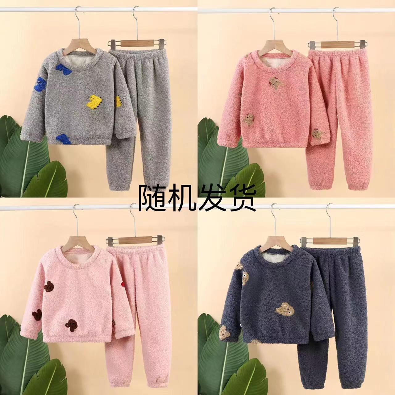 가을과 겨울 어린이 쌀 곡물 벨벳 잠옷 세트 어린이 겉옷 캐주얼 세트 중형 및 대형 어린이 겉옷 모피 홈웨어스토어 가기
