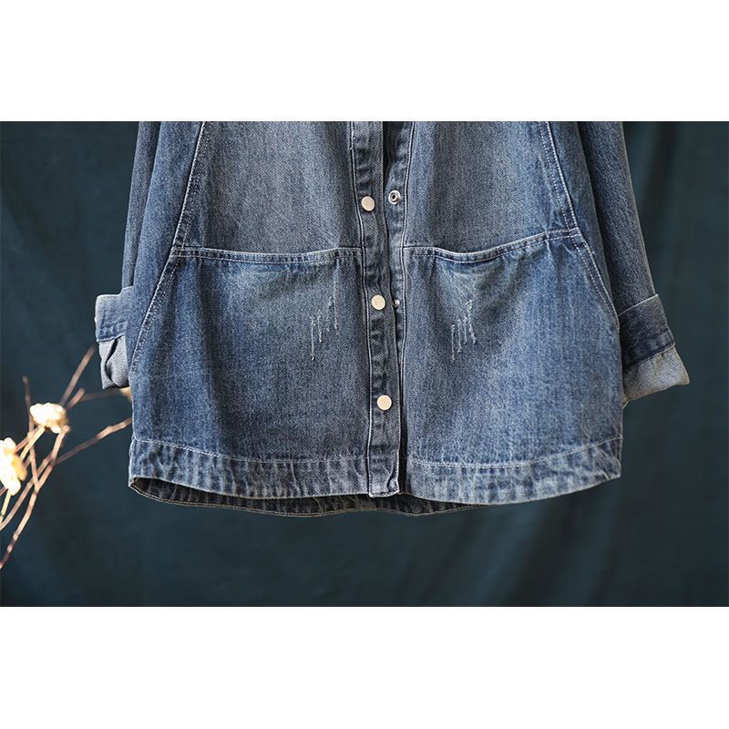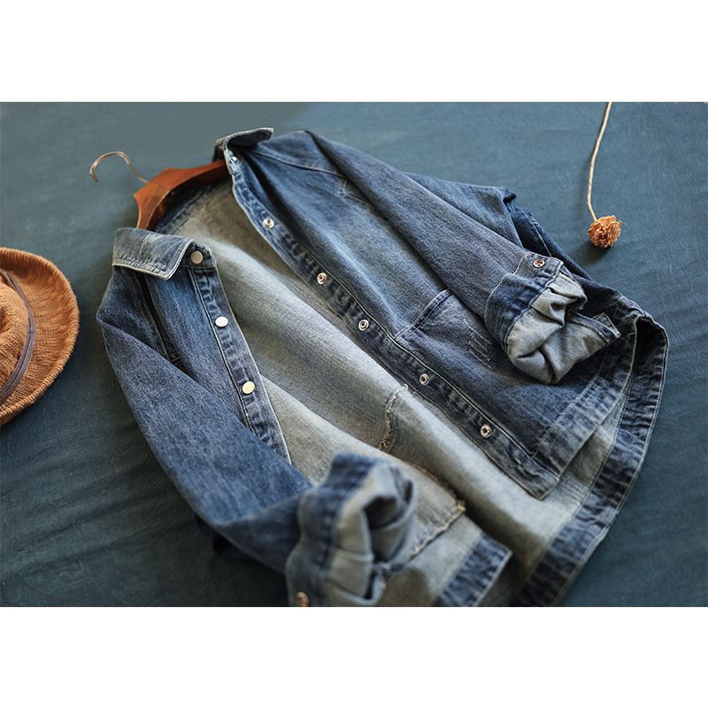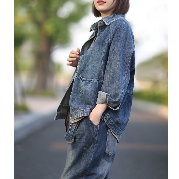 데님 코트 2023 문학 복고풍 한국 스타일 서양 스타일 느슨한 슬림 인기 탑 데님 재킷 여성 재킷스토어 가기
