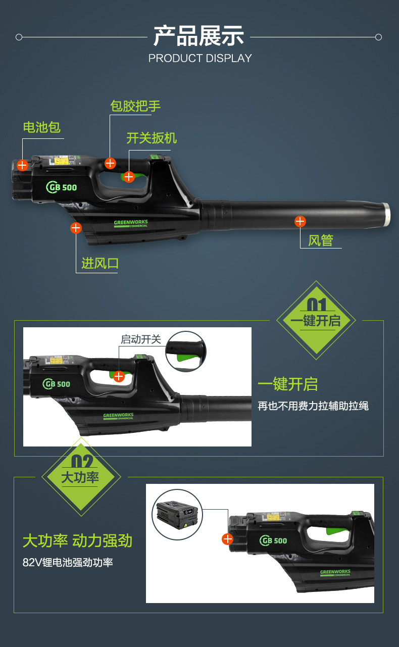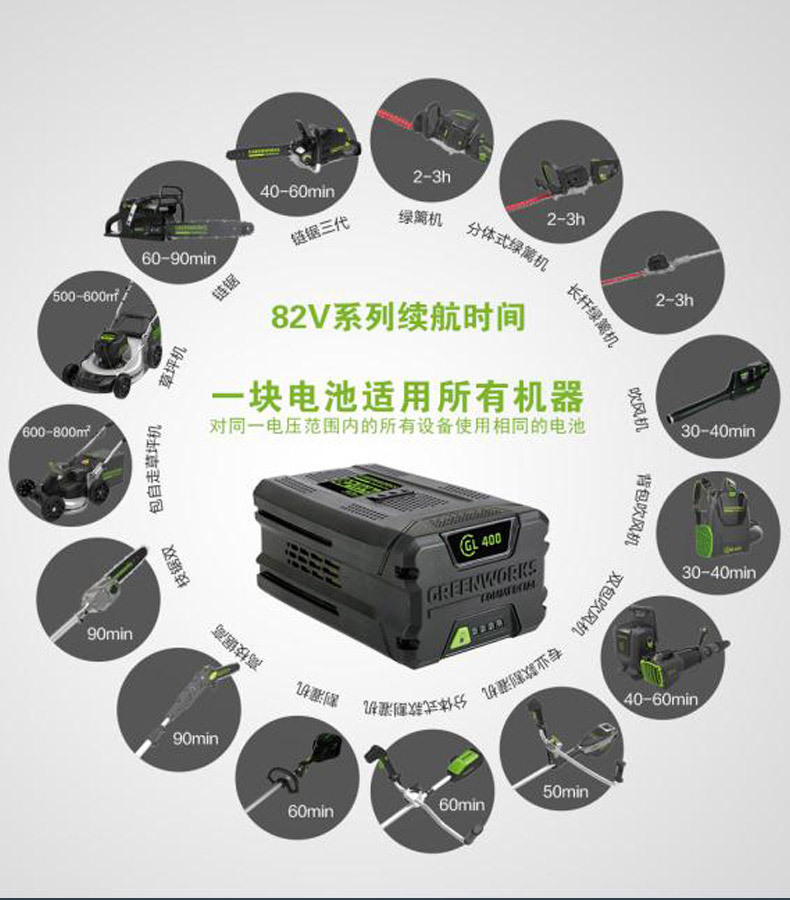 • 싱글 호스트 + 82v 백팩 배터리 + 충전기 장수명 추천