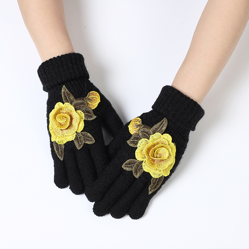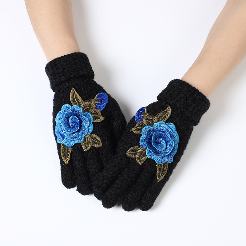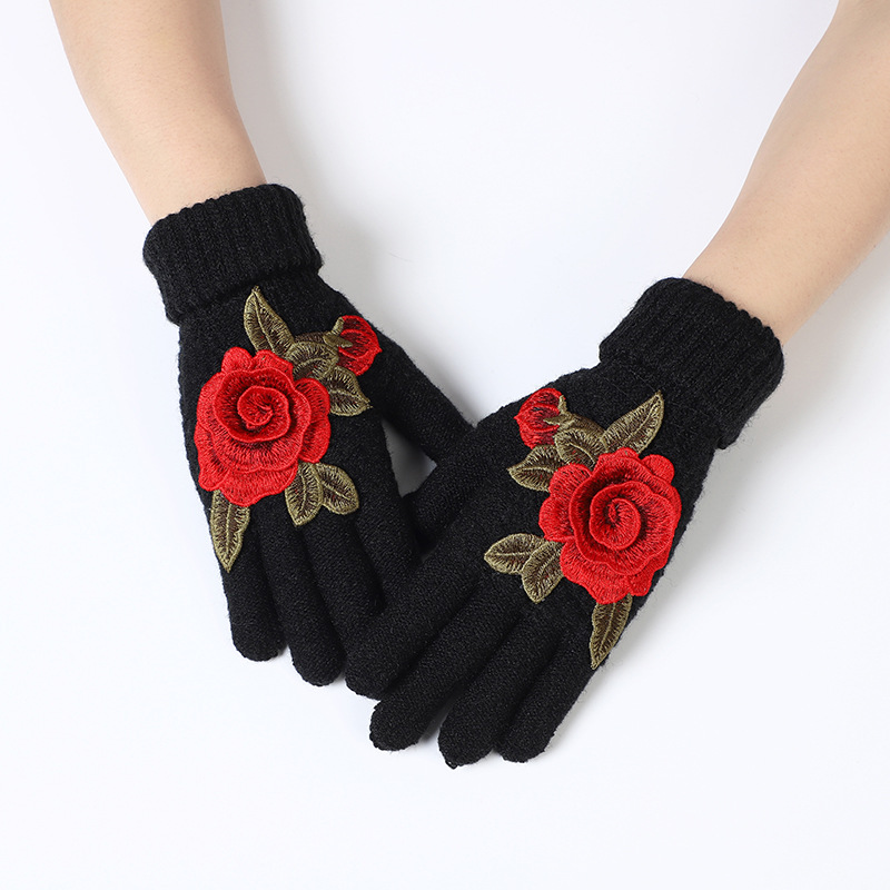 가을과 겨울 에스닉 스타일 입체 자수 꽃 기모 두꺼운 따뜻한 여성의 터치 스크린 장갑 팔찌 패션 모든 일치