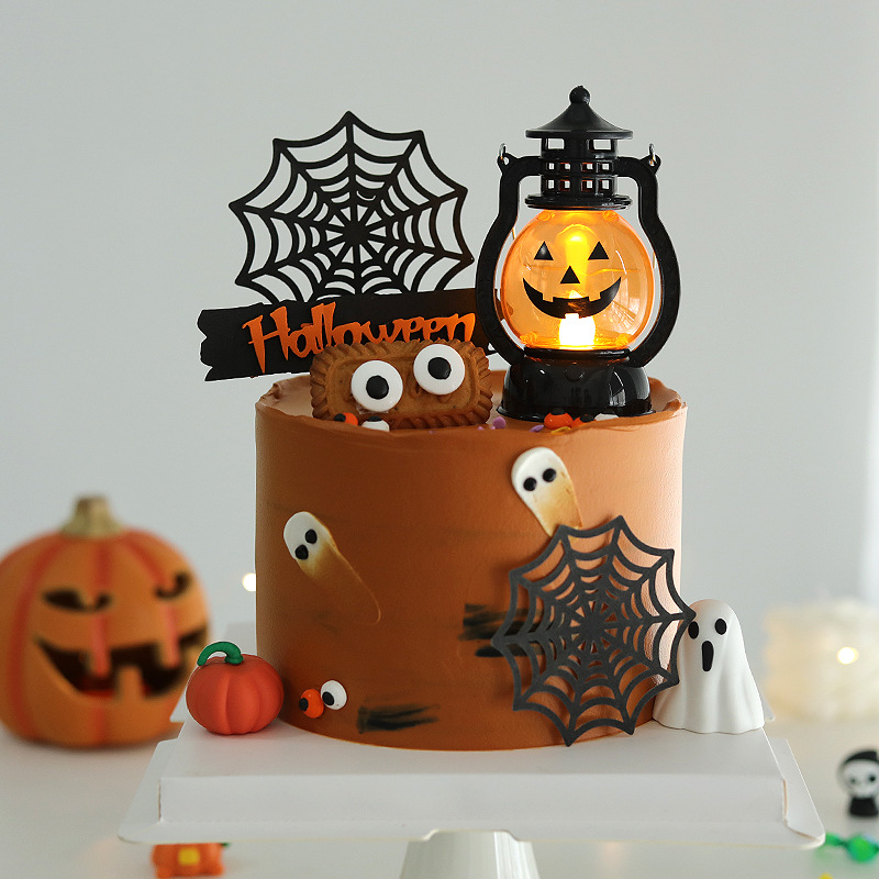 할로윈 휴대용 빛나는 호박 랜턴 케이크 장식 재미있는 작은 눈 설탕 구슬 비스킷 휴일 베이킹 플러그인스토어 가기