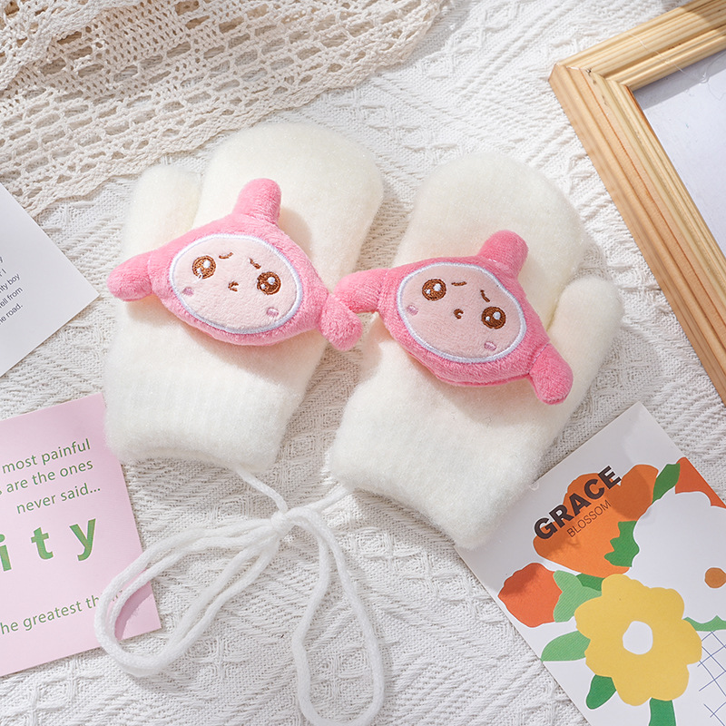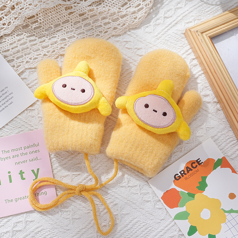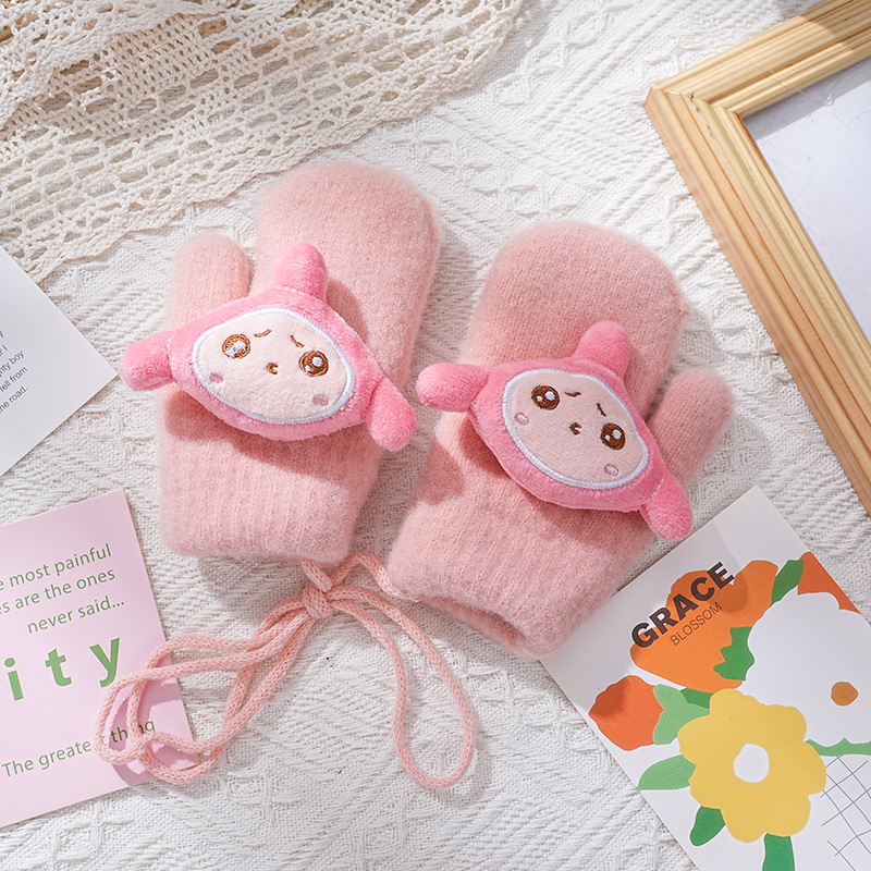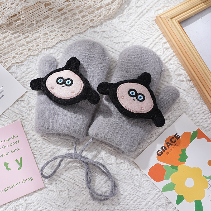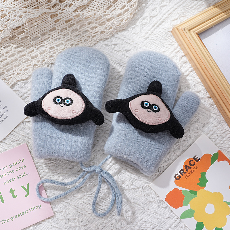 3-8세 어린이용 장갑, 한국 가을 겨울용, 만화 캐릭터, 겨울용 플리스 안감, 따뜻한, 목걸이형, 귀여운, 일체형 장갑