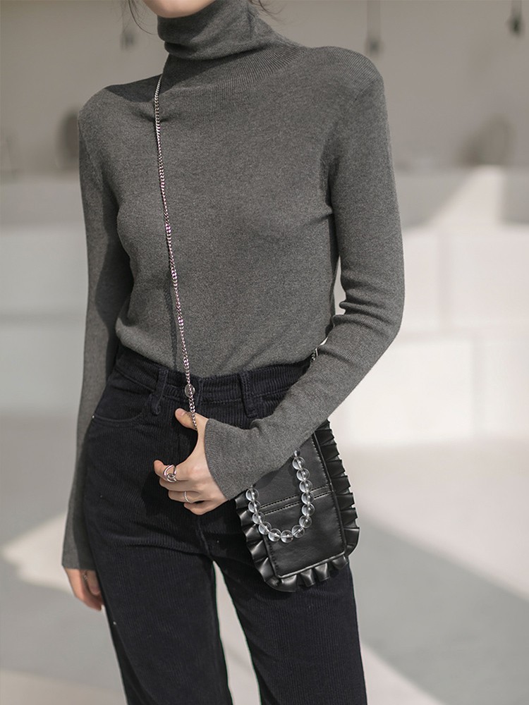 타로 퍼플 하이 넥 타이트 울 니트웨어 여성용 가을과 겨울 세련된 폭발성 내부 파일 칼라 스웨터베이스 탑스토어 가기