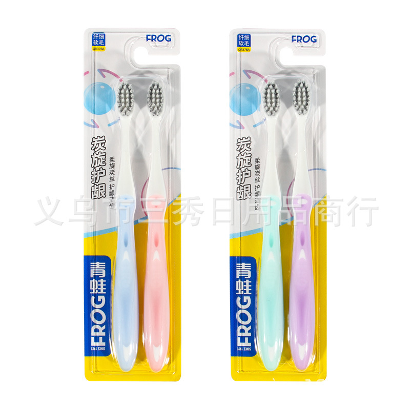 FROG 376A 탄소 회전 껌 케어 슬림 부드러운 모피 성인 어린이 작은 브러시 헤드 칫솔 2 pcs/set스토어 가기