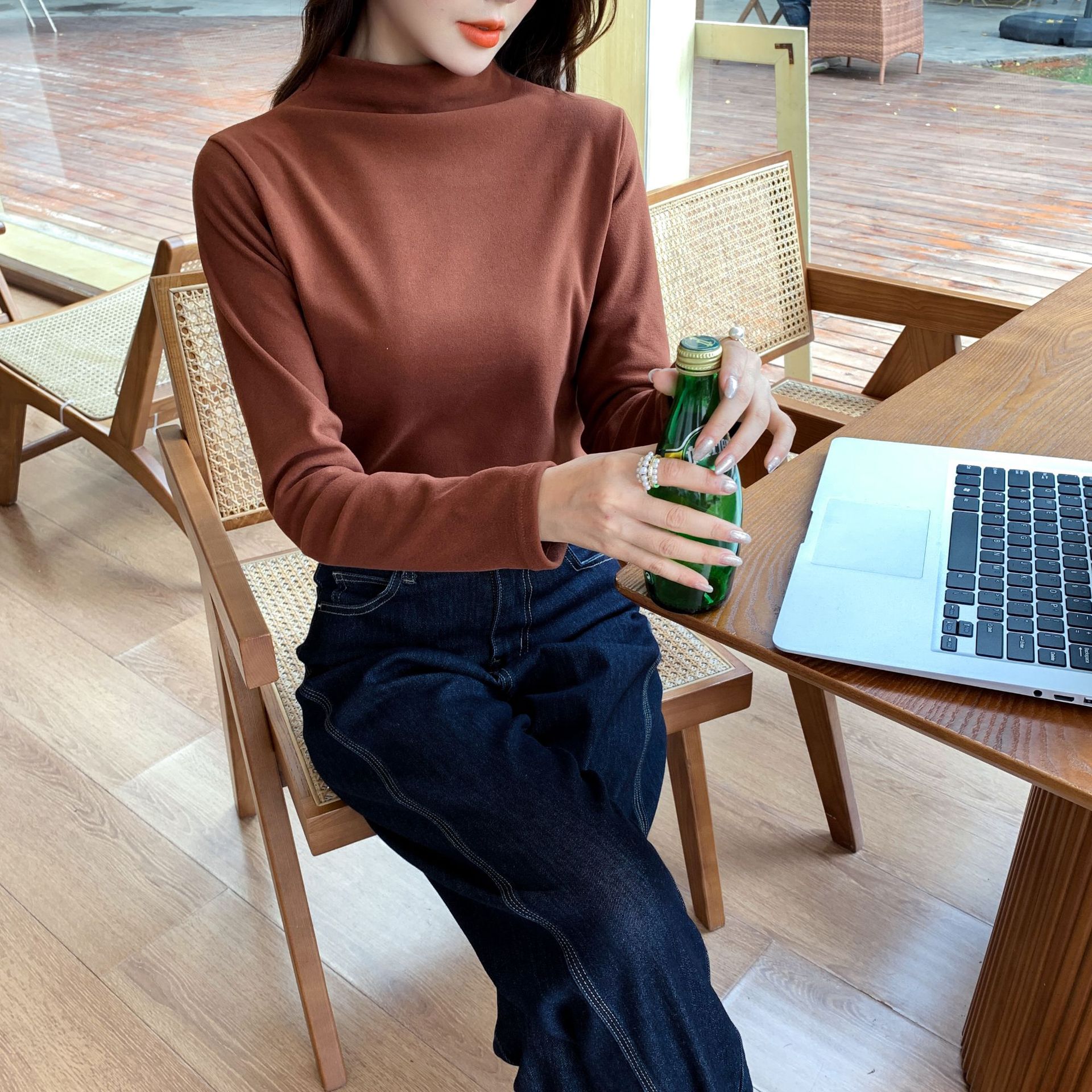 양면 벨벳 베이스 셔츠 여성용 가을과 겨울 샌딩 세미 하이 칼라 긴 소매 두꺼운 따뜻한 슬림 핏 올 매치 탑 여성용스토어 가기
