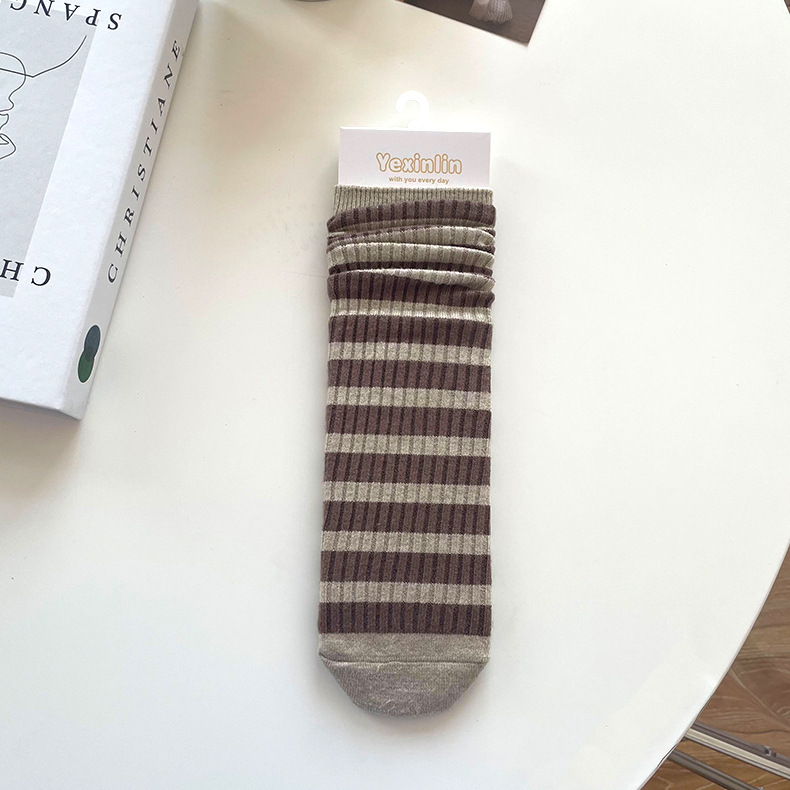 양말 여성용 가을과 겨울 새로운 대비 색상 더미 양말 일본식 스티칭 줄무늬 요정 양말 호주 캐시미어 중형 양말스토어 가기