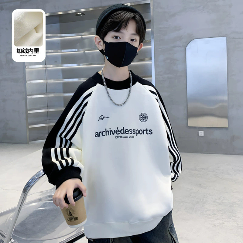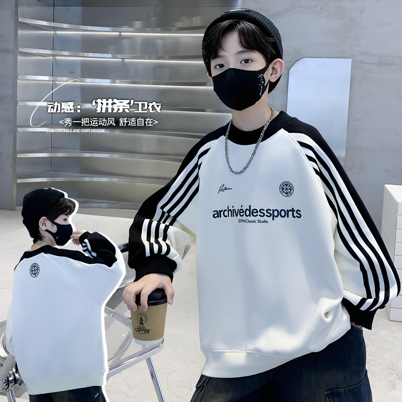 아동복 남아 봄 가을 스웨트셔츠 2025 신상 한국 스타일 큰아이용 기모 긴팔 이너웨어 트렌디 상의 해외 도매