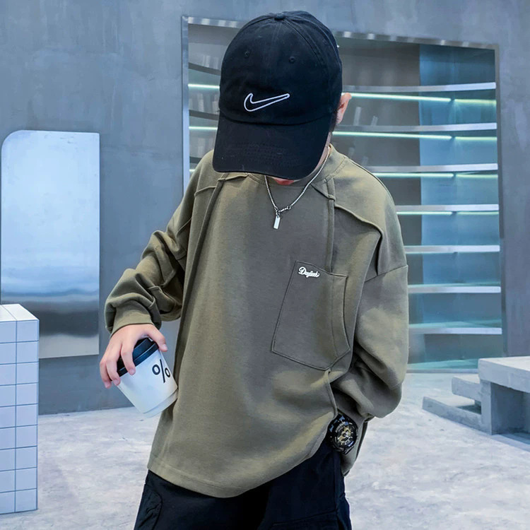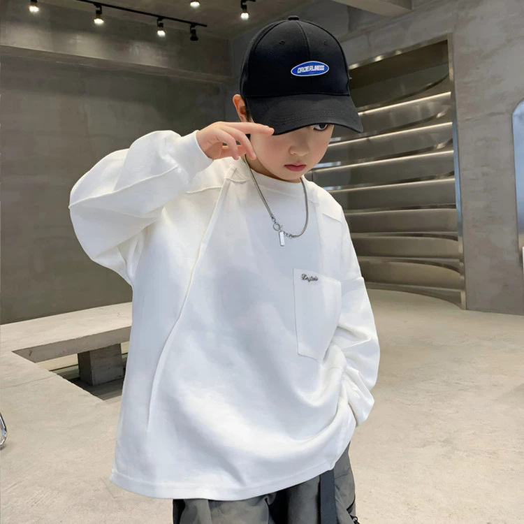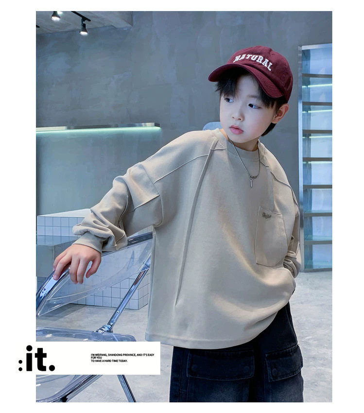 아동복 남아 봄 가을 스웨트셔츠 2025 신상 한국 스타일 큰아이용 기모 긴팔 이너웨어 트렌디 상의 해외 도매스토어 가기