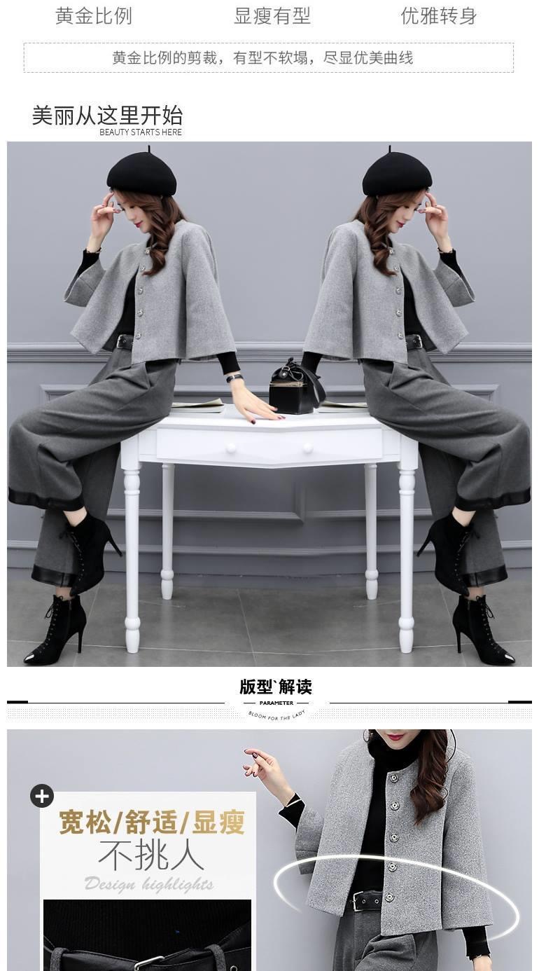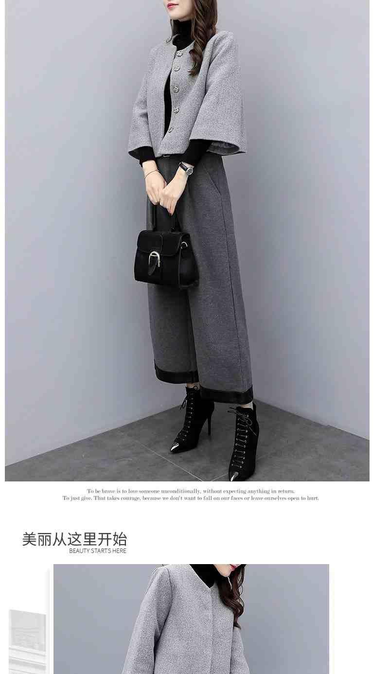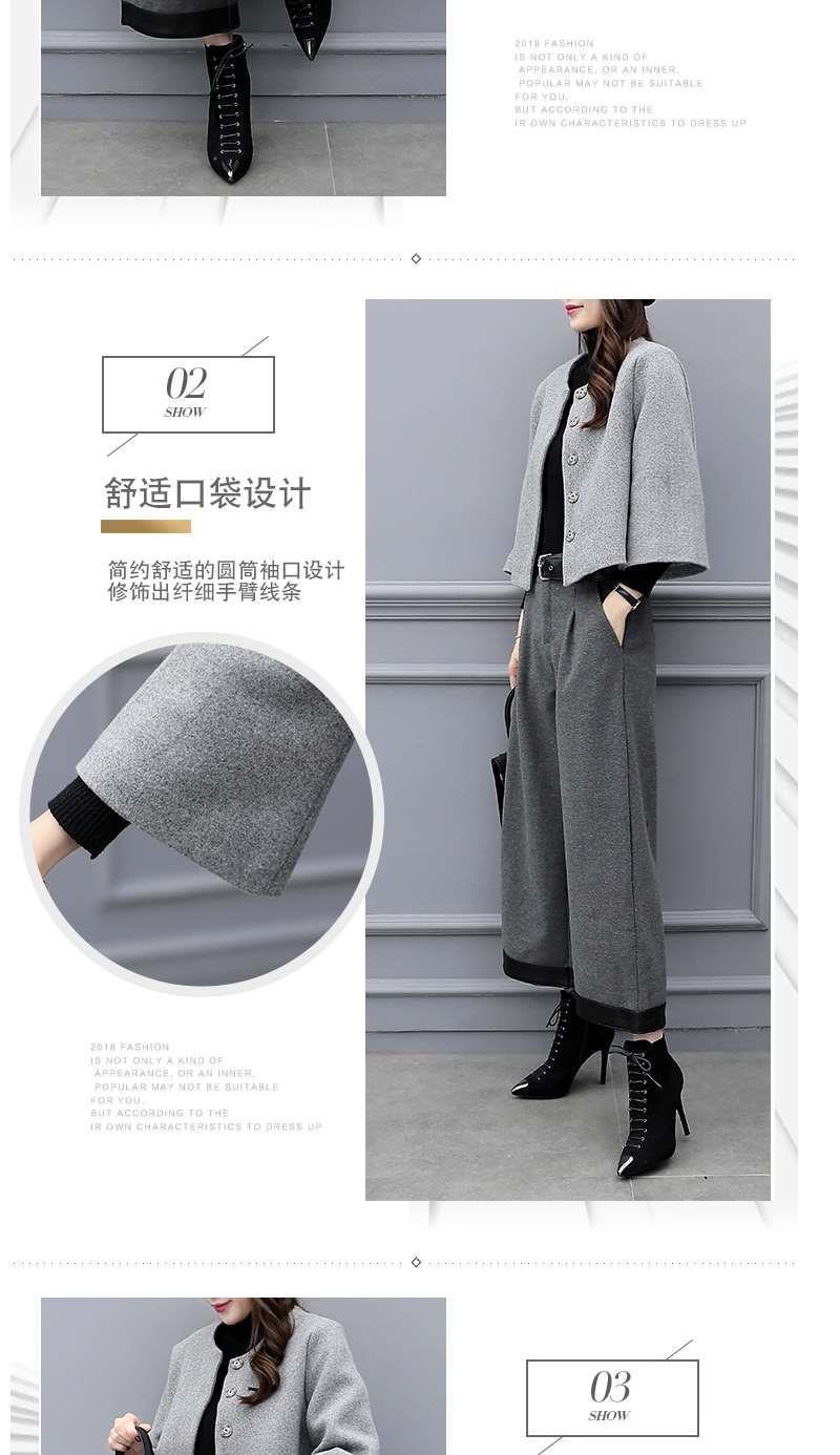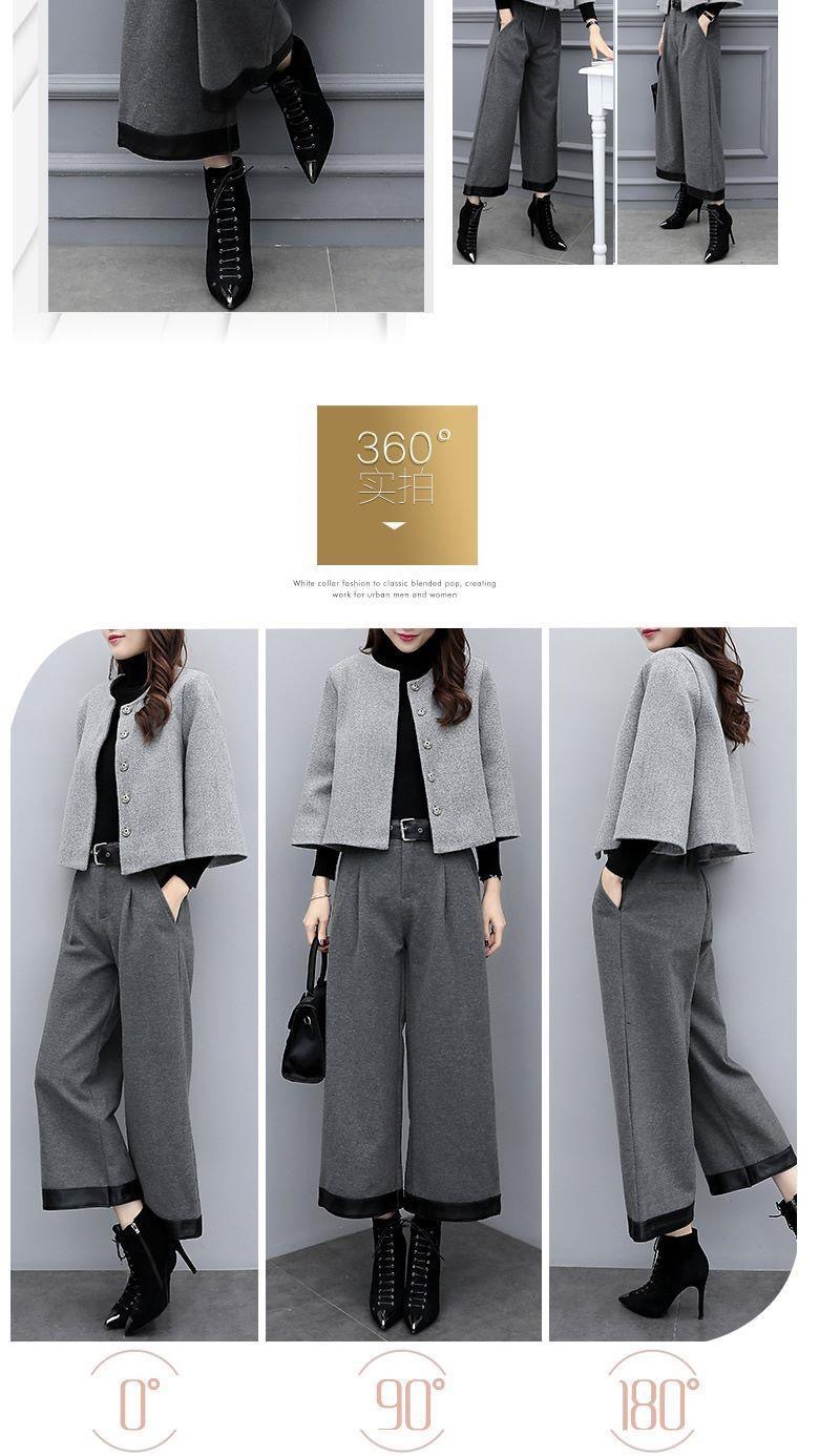 2025 새로운 여성 가을, 겨울 대형 투피스 바지 모직 짧은 코트 와이드 레그 팬츠 캐주얼 패션 정장 여성 트렌드스토어 가기
