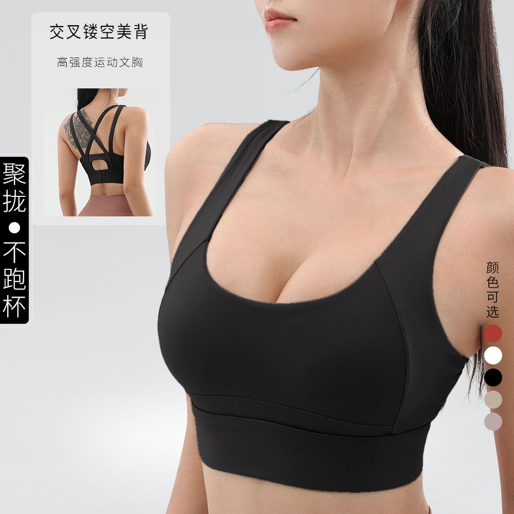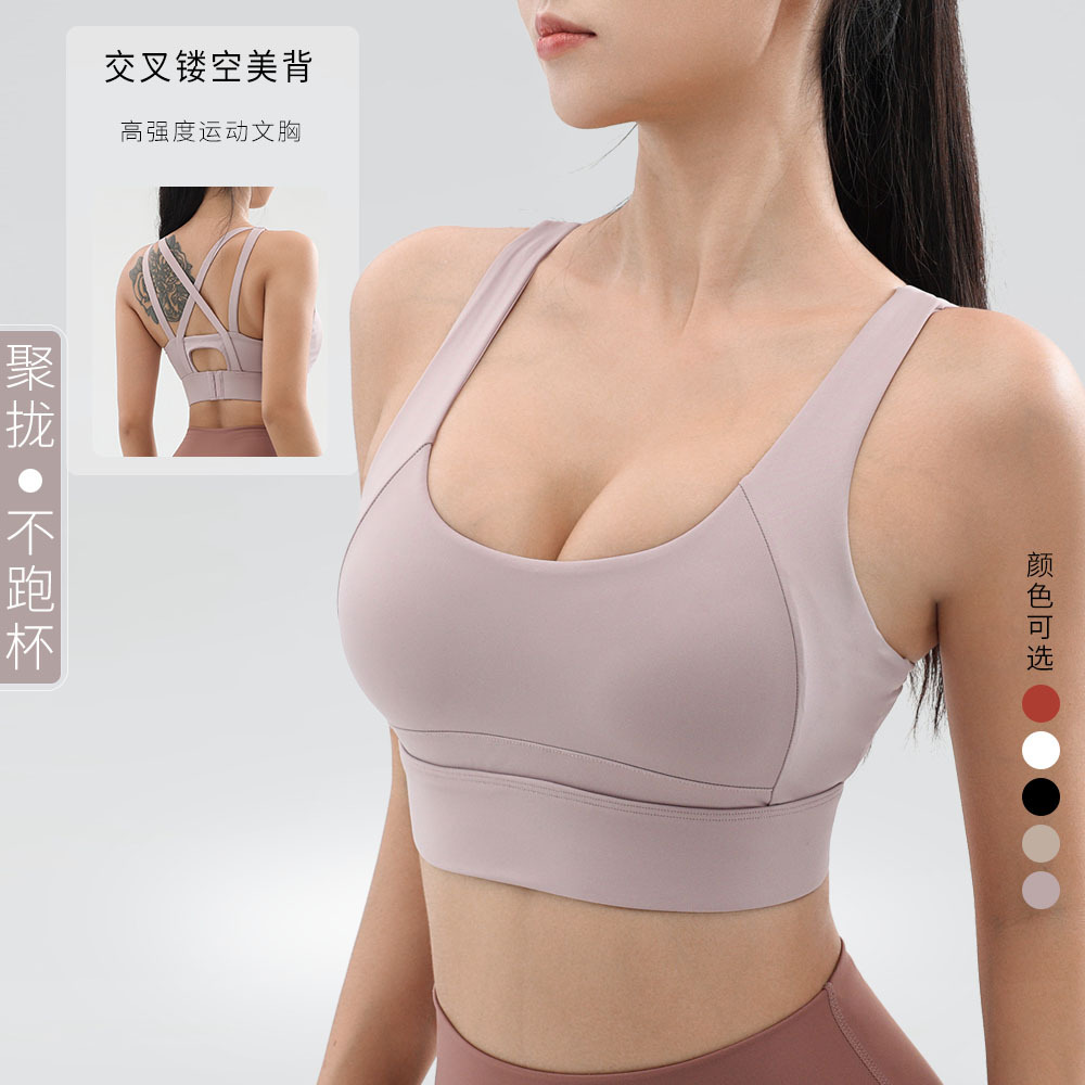 원피스 고정 컵 스포츠 속옷 충격 방지 여성용 고강도 달리기 피트니스 브라 Xia Mei 백 요가 조끼스토어 가기