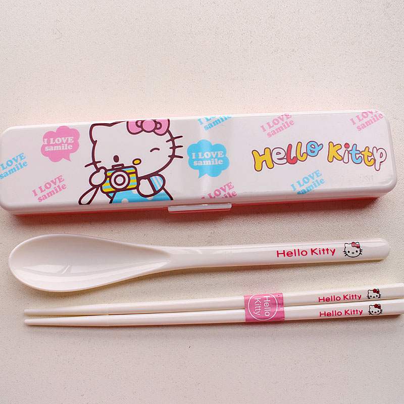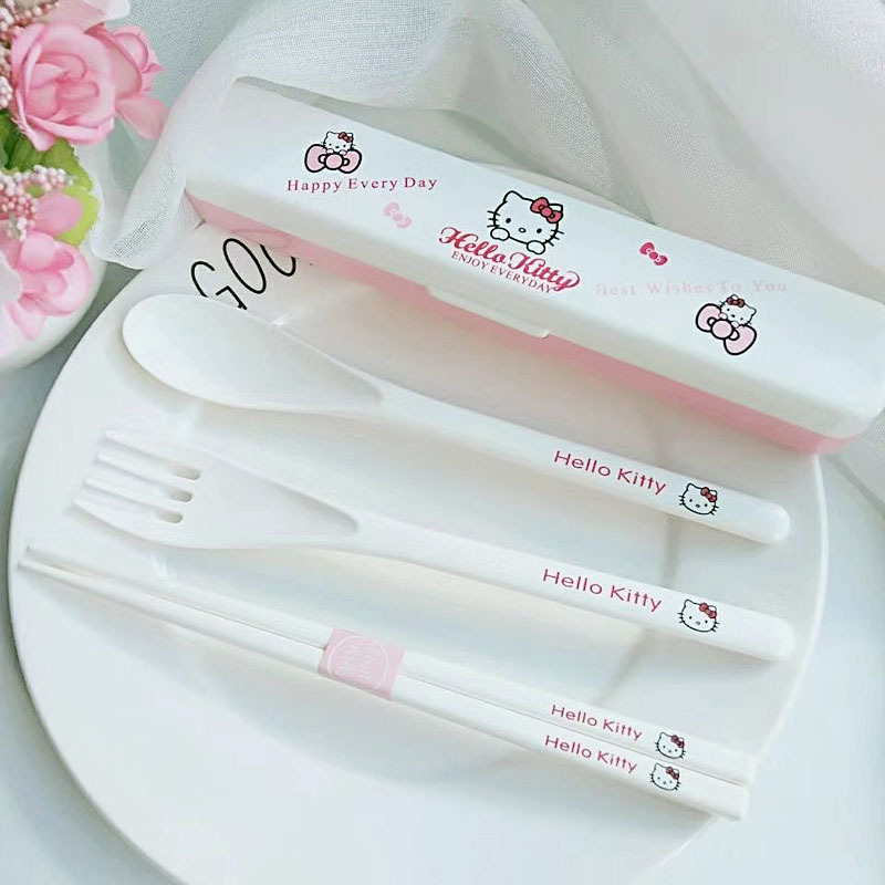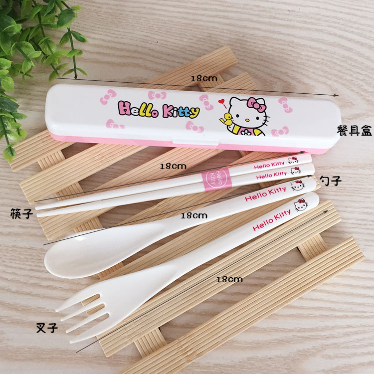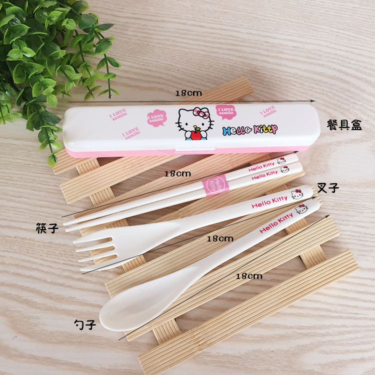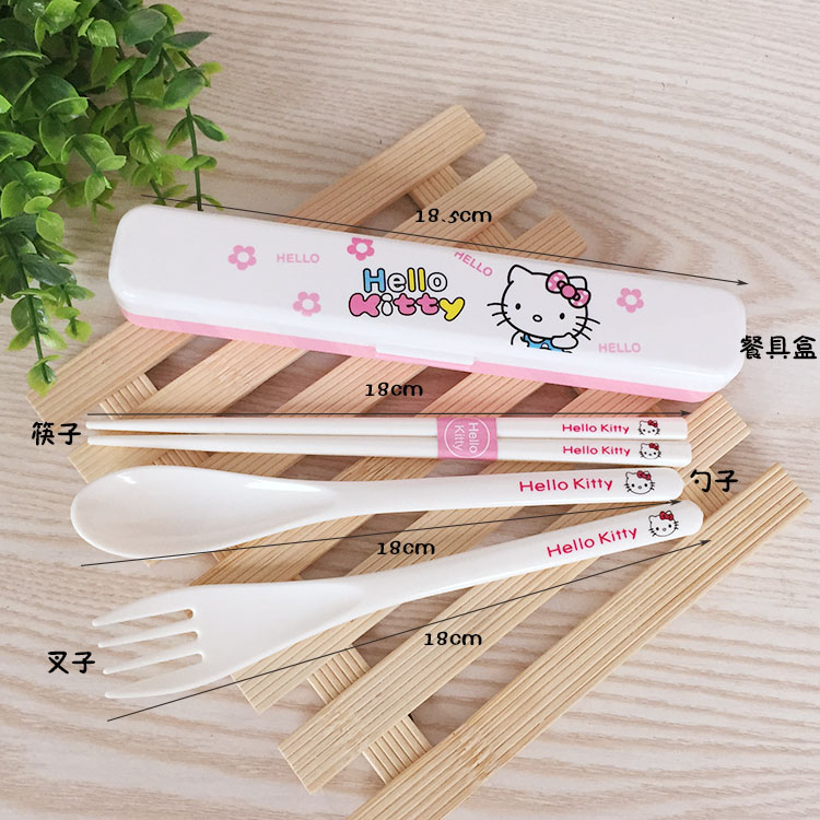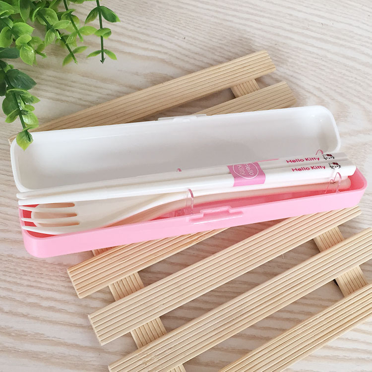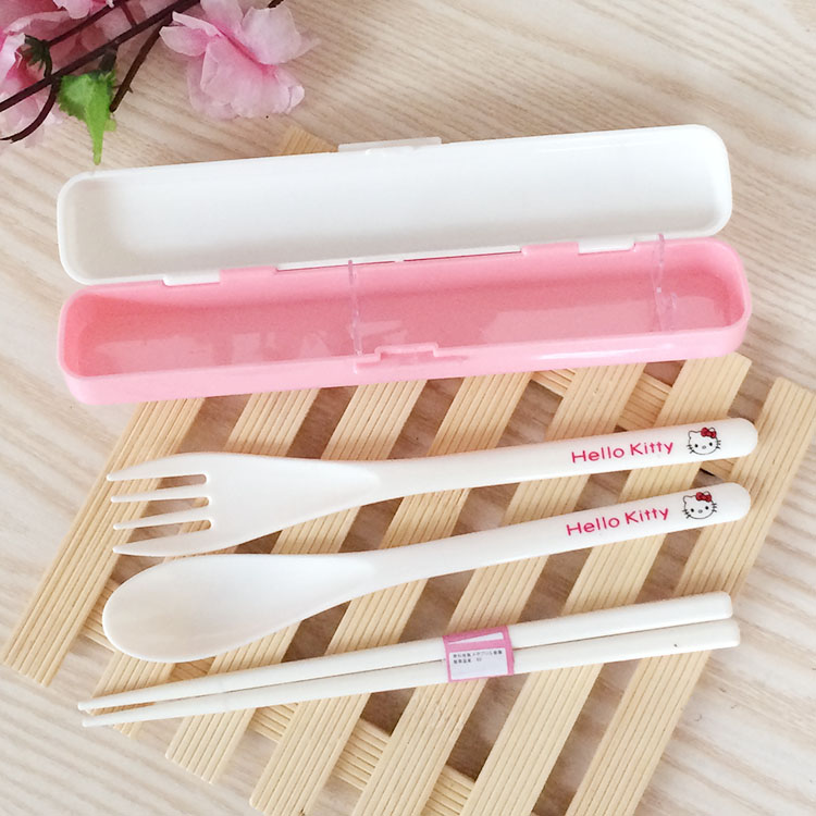 만화 친환경 식기 휴대용 낙하 방지 플라스틱 젓가락 숟가락 포크 세트 귀여운 뜨거운 판매 학생 1 세트 4