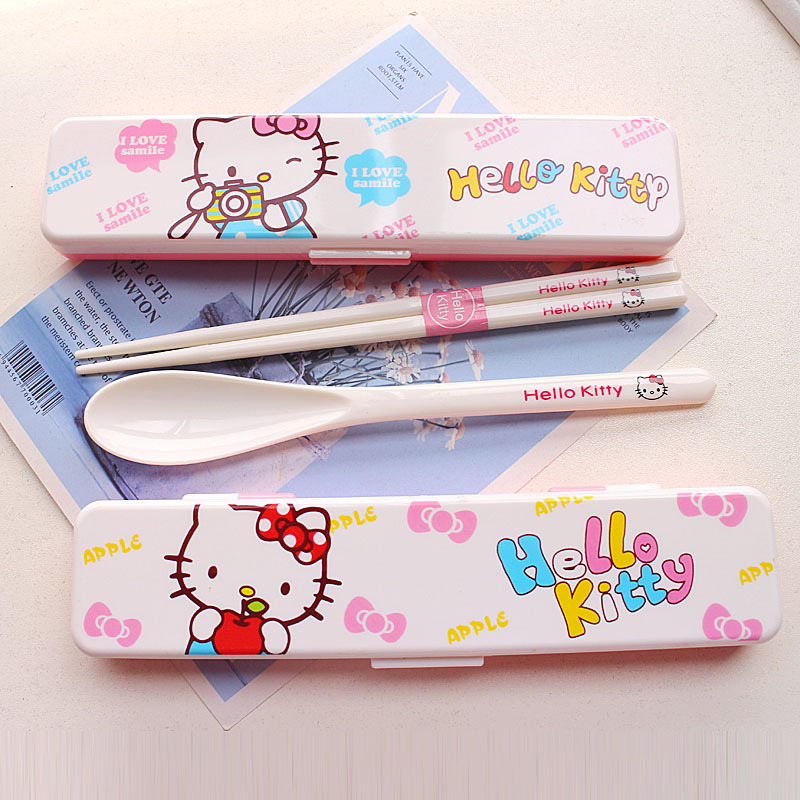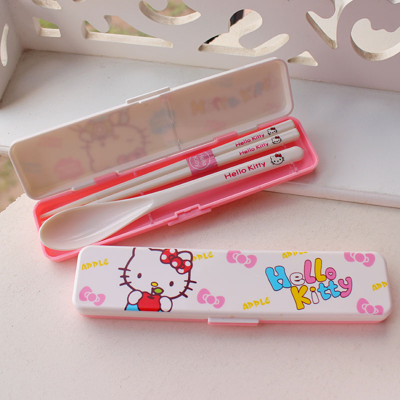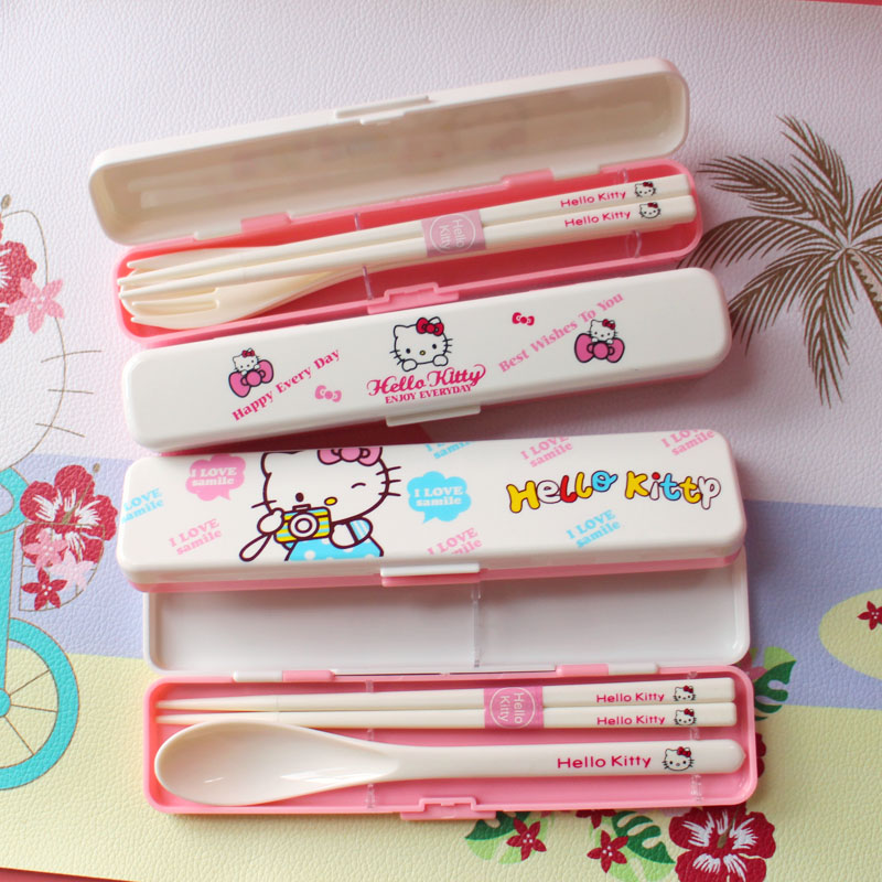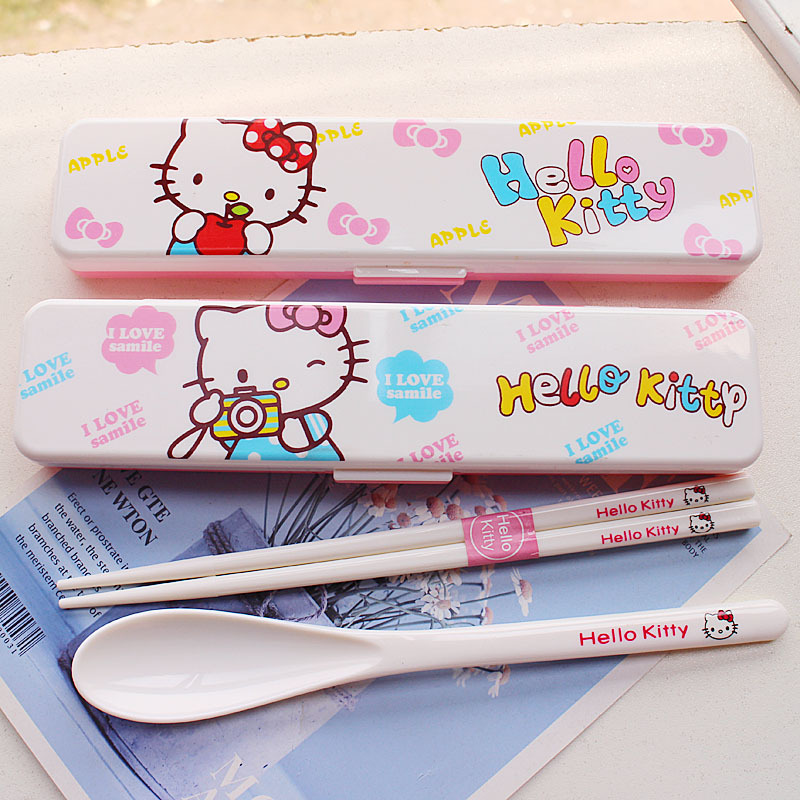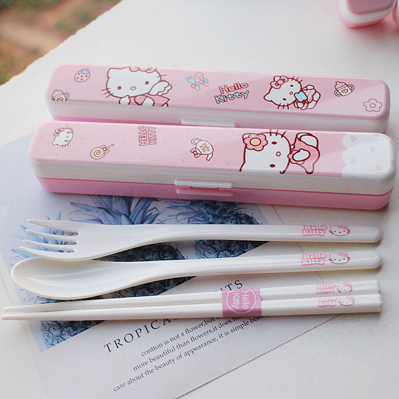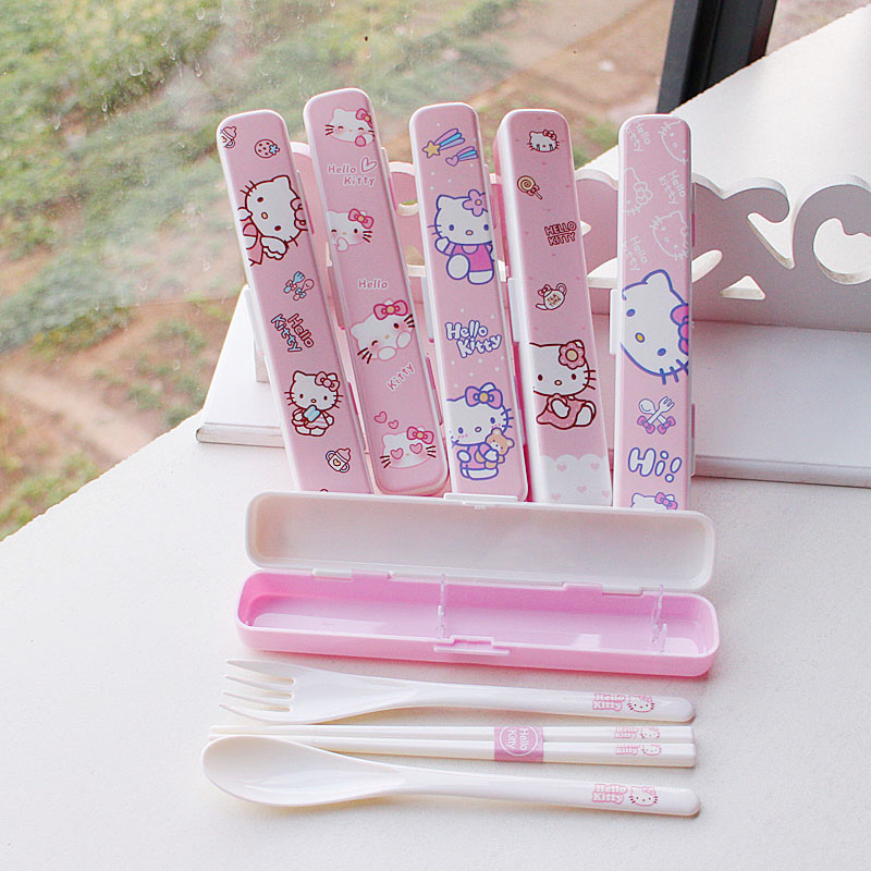만화 친환경 식기 휴대용 낙하 방지 플라스틱 젓가락 숟가락 포크 세트 귀여운 뜨거운 판매 학생 1 세트 4
