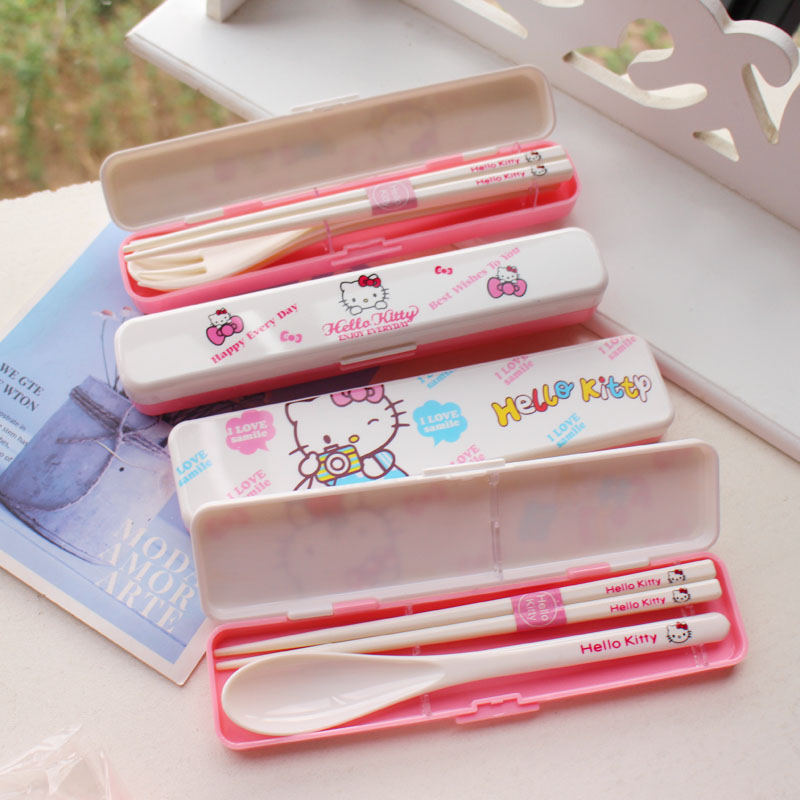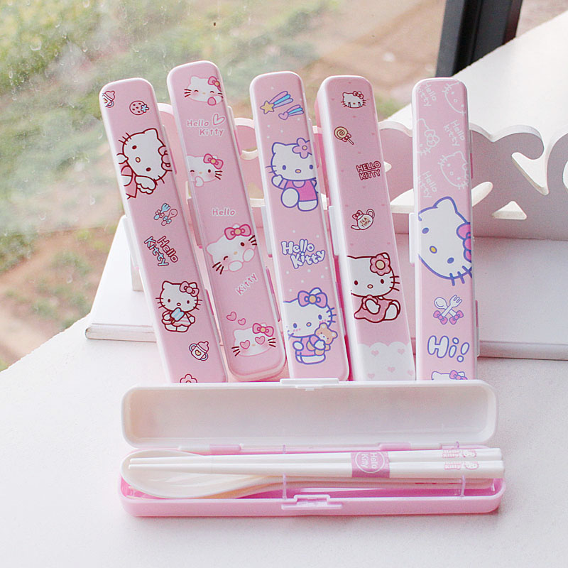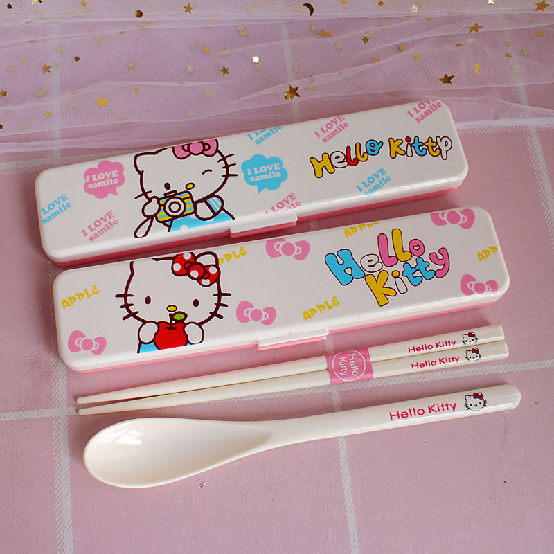 만화 친환경 식기 휴대용 낙하 방지 플라스틱 젓가락 숟가락 포크 세트 귀여운 뜨거운 판매 학생 1 세트 4스토어 가기