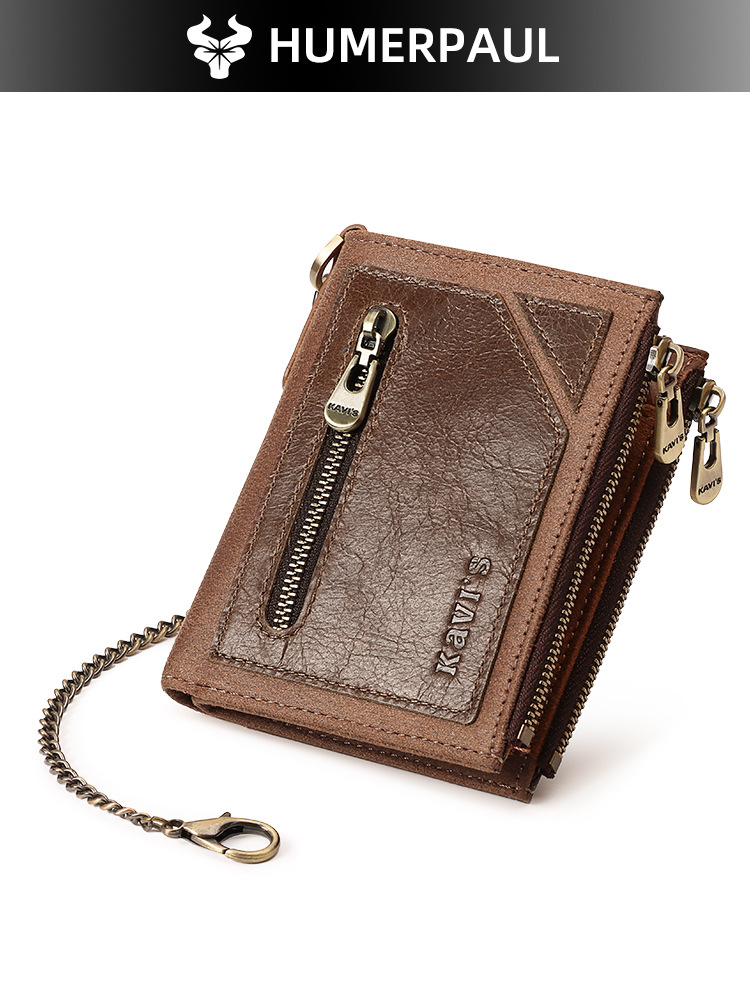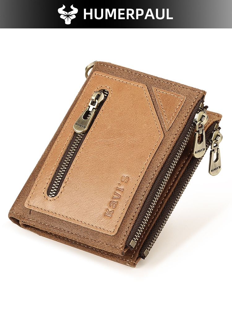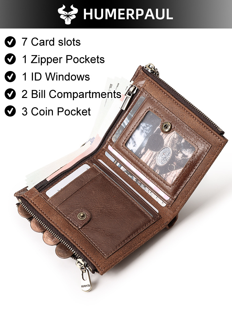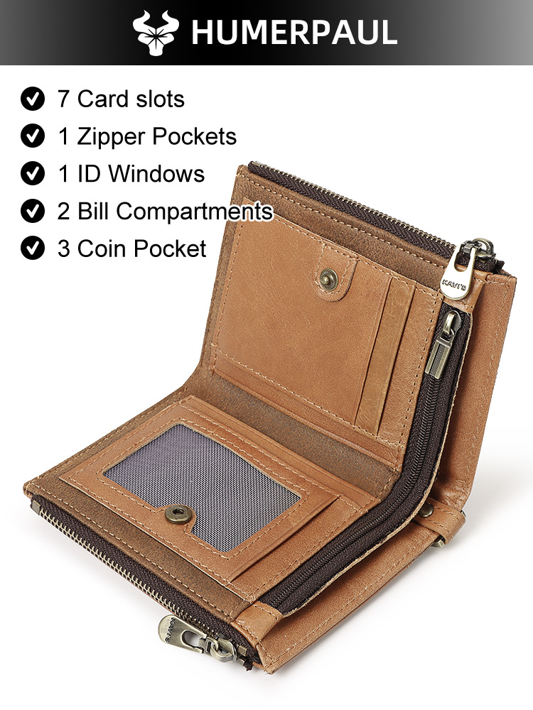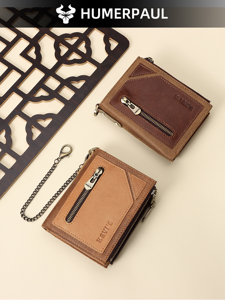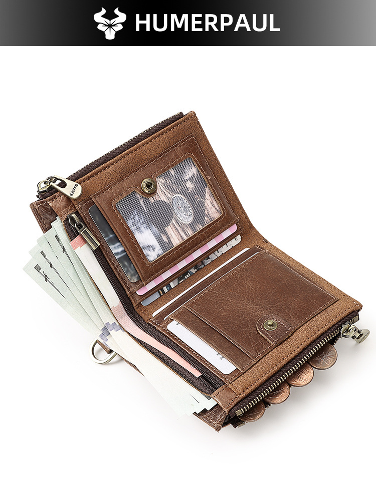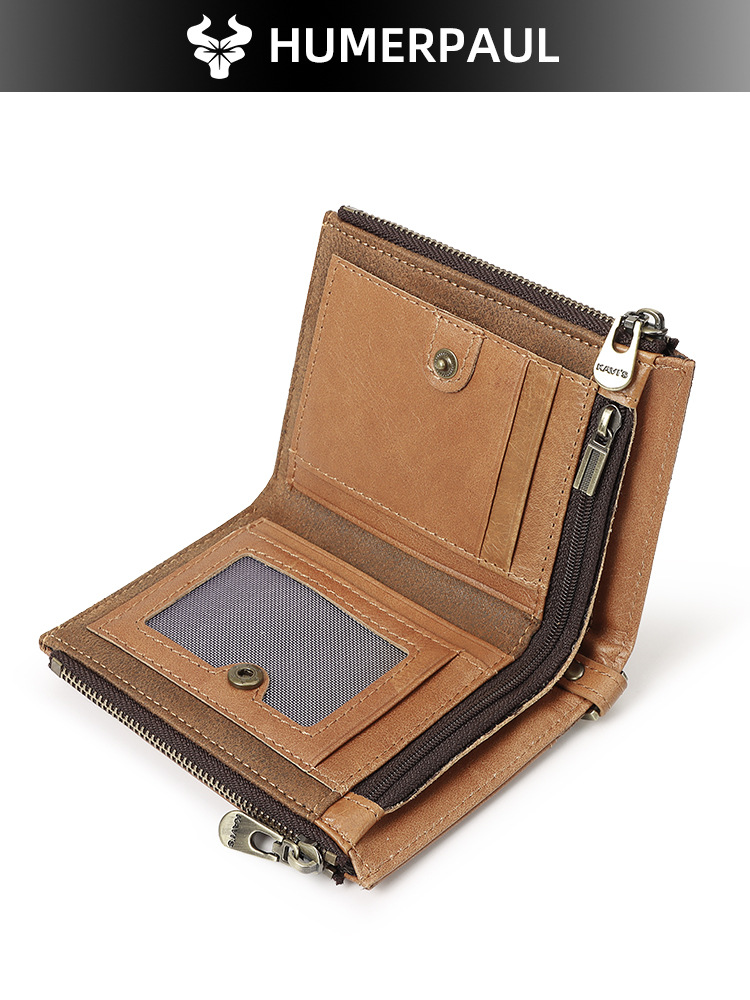 크로스 보더 남성 지갑 도난 방지 브러시 RFID 가죽 지갑 다기능 이중 지퍼 수직 지갑 패션 동전 지갑스토어 가기