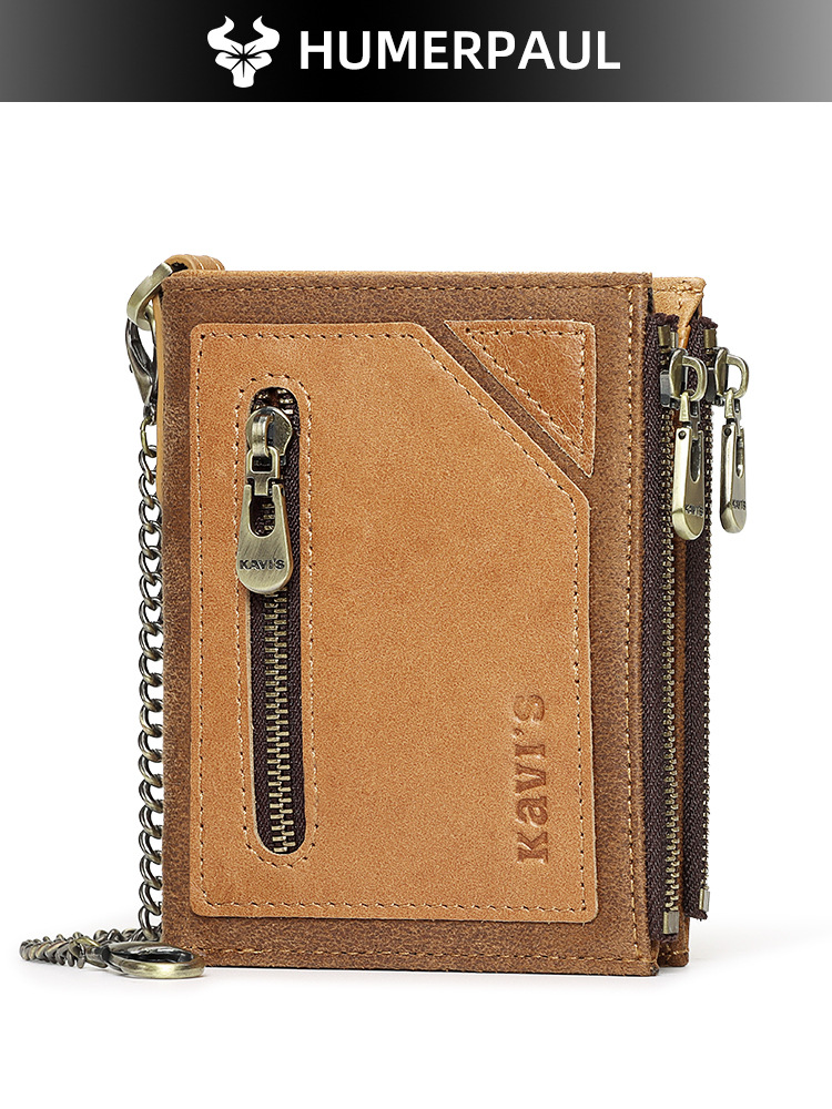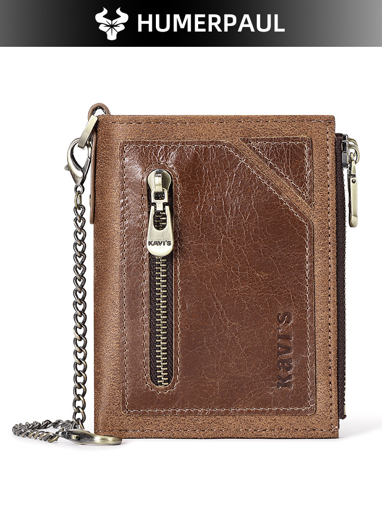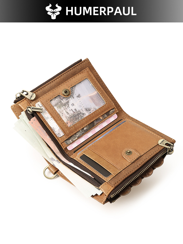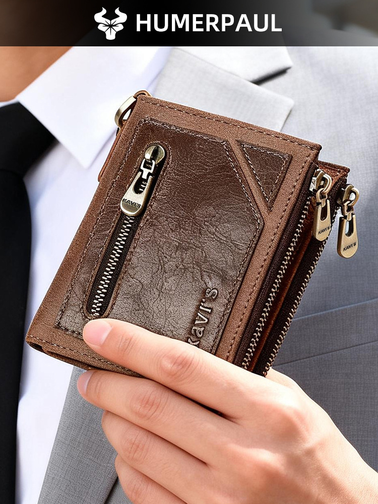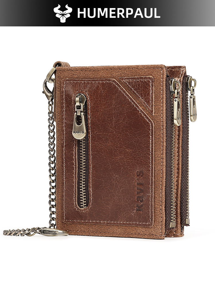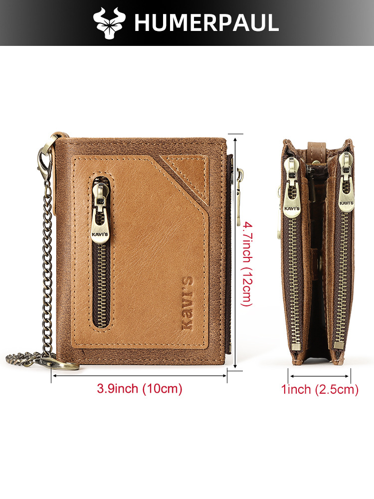 크로스 보더 남성 지갑 도난 방지 브러시 RFID 가죽 지갑 다기능 이중 지퍼 수직 지갑 패션 동전 지갑스토어 가기