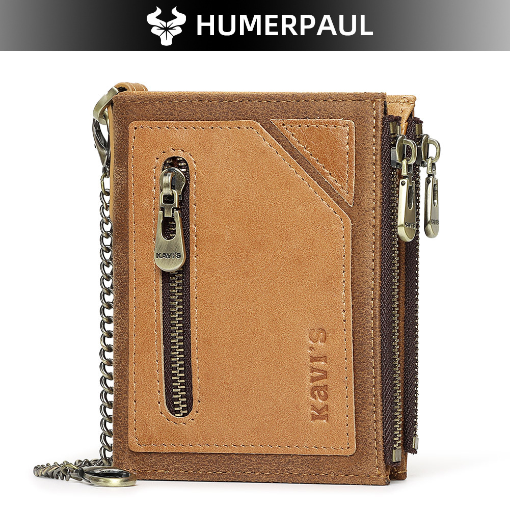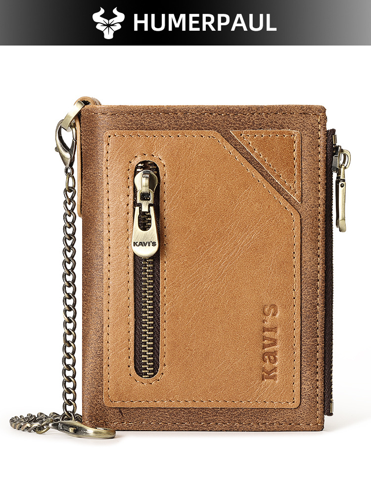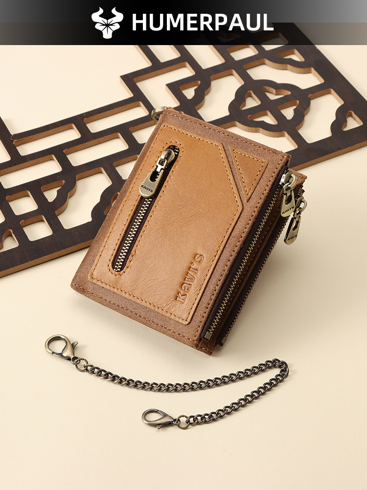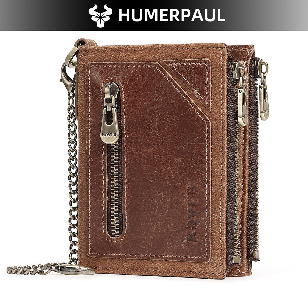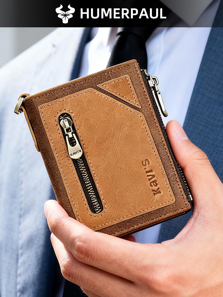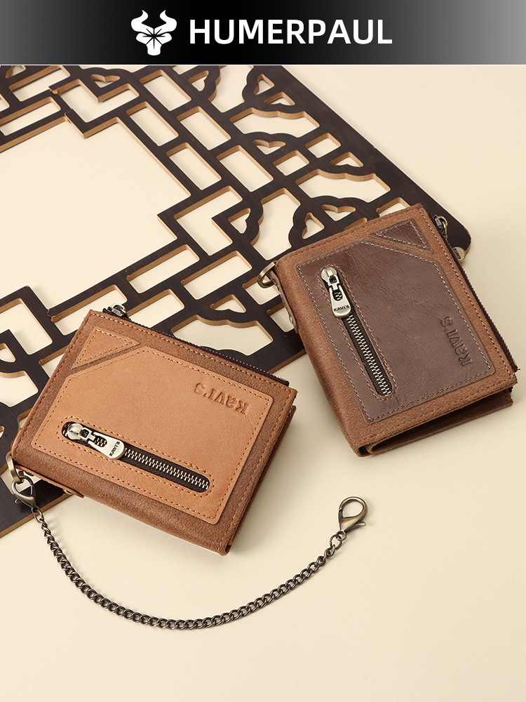 크로스 보더 남성 지갑 도난 방지 브러시 RFID 가죽 지갑 다기능 이중 지퍼 수직 지갑 패션 동전 지갑스토어 가기