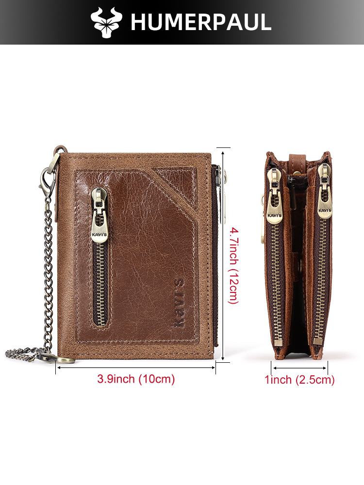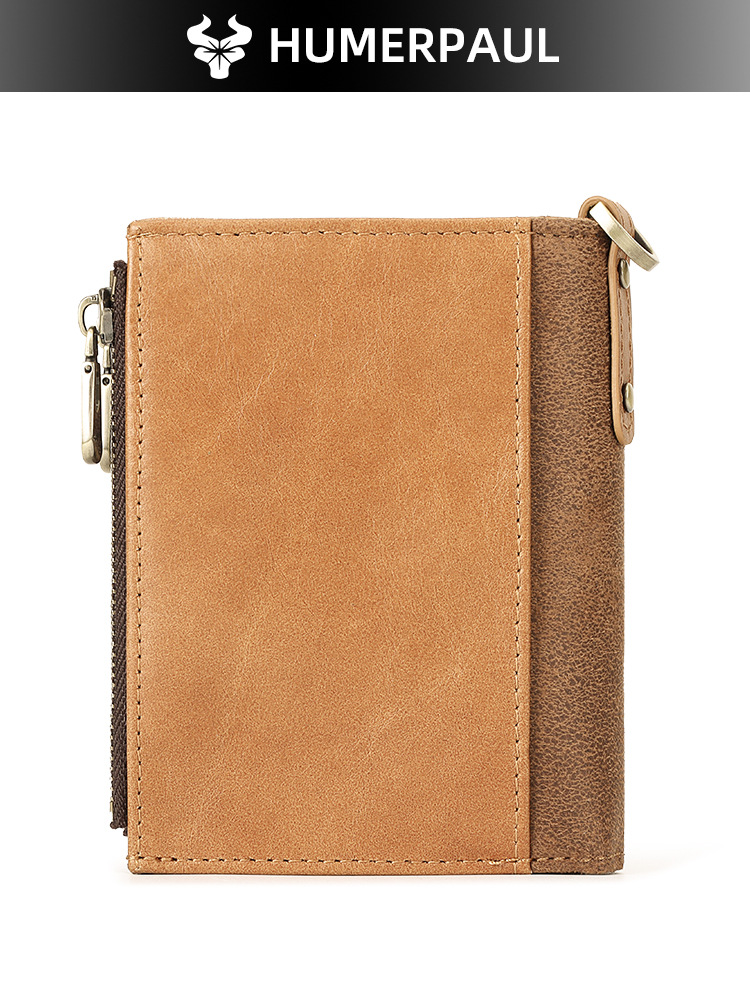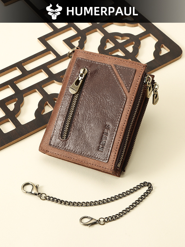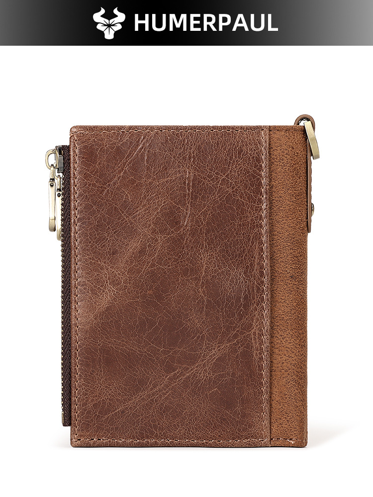 크로스 보더 남성 지갑 도난 방지 브러시 RFID 가죽 지갑 다기능 이중 지퍼 수직 지갑 패션 동전 지갑