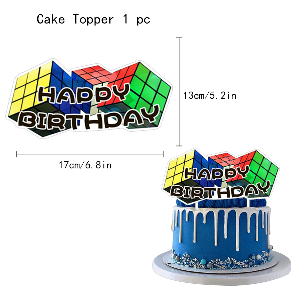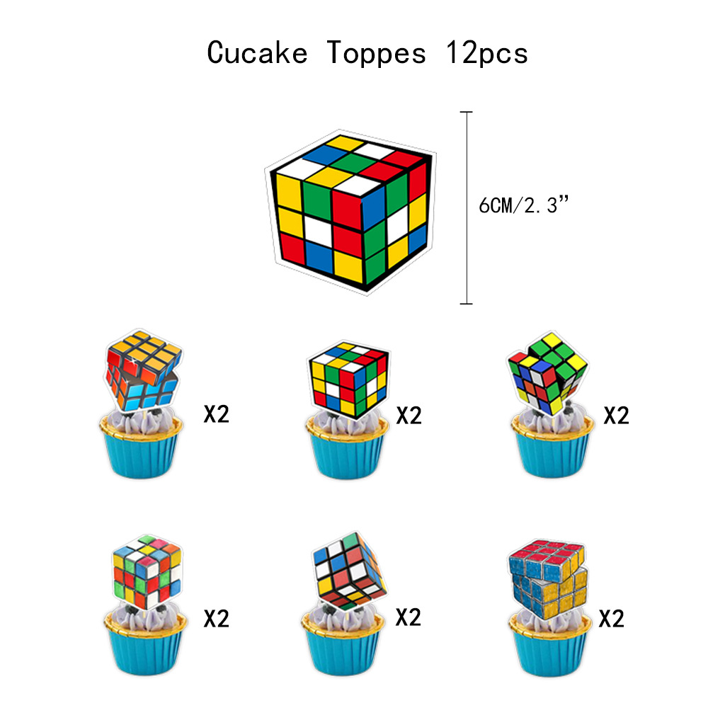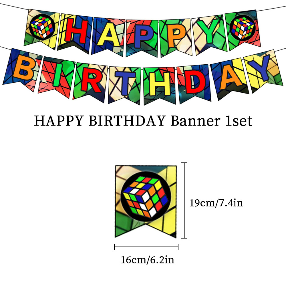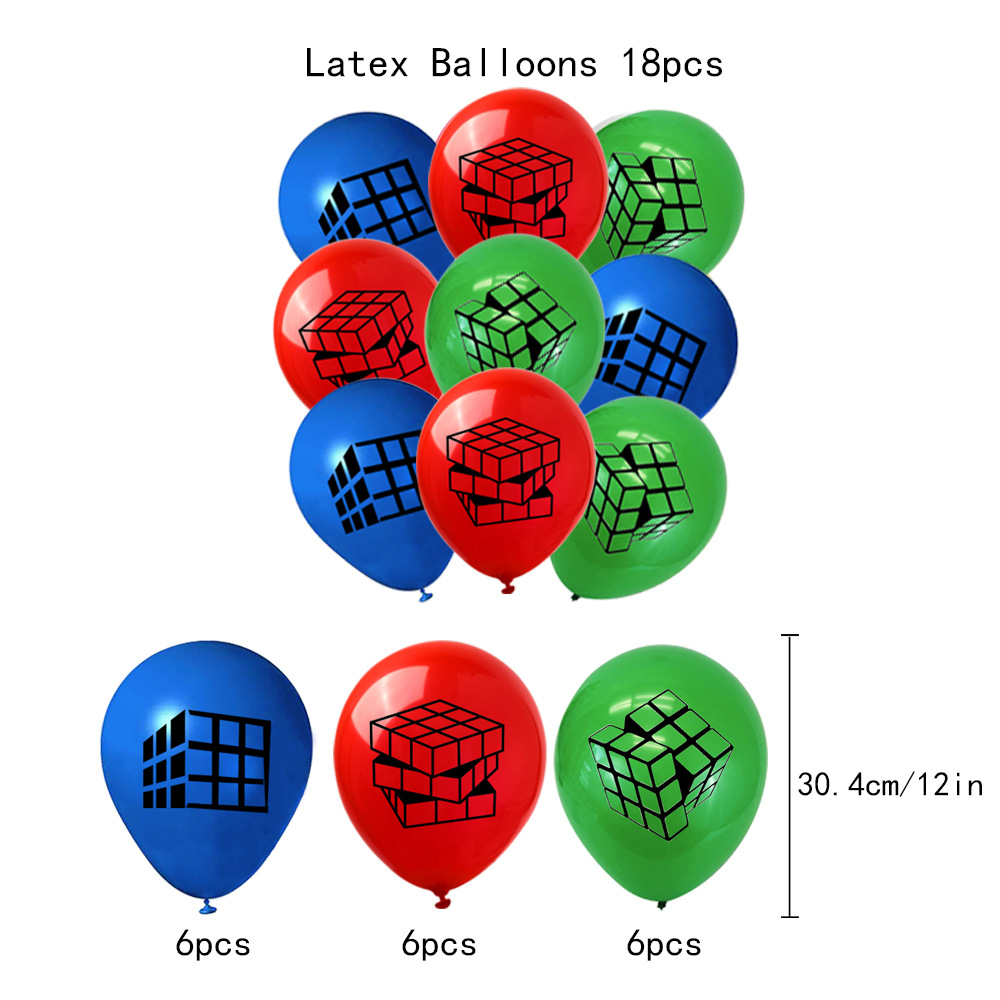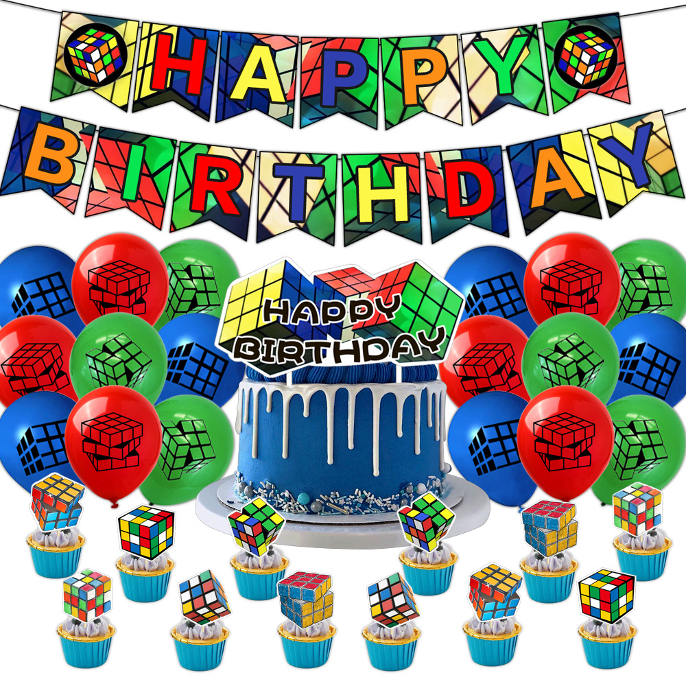루빅스 큐브 내 세계 생일 파티 세트 라텍스 풍선 깃발 당기기 플러그인 케이크 삽입 장식 장식품스토어 가기