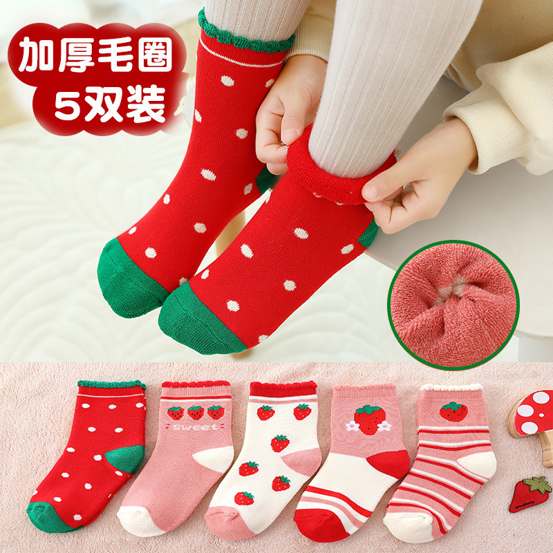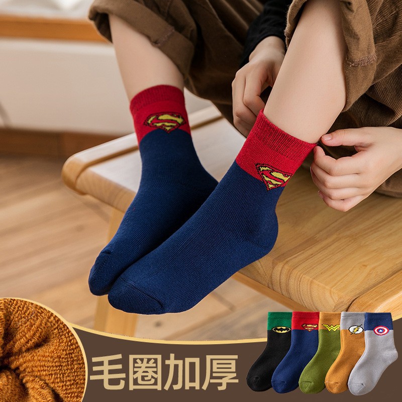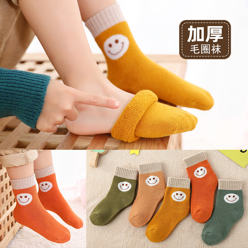 어린이 두꺼운 테리 양말 겨울 남자와 여자 큰 곰 만화 어린이 큰 기모 따뜻한 수건 아기 튜브 양말스토어 가기