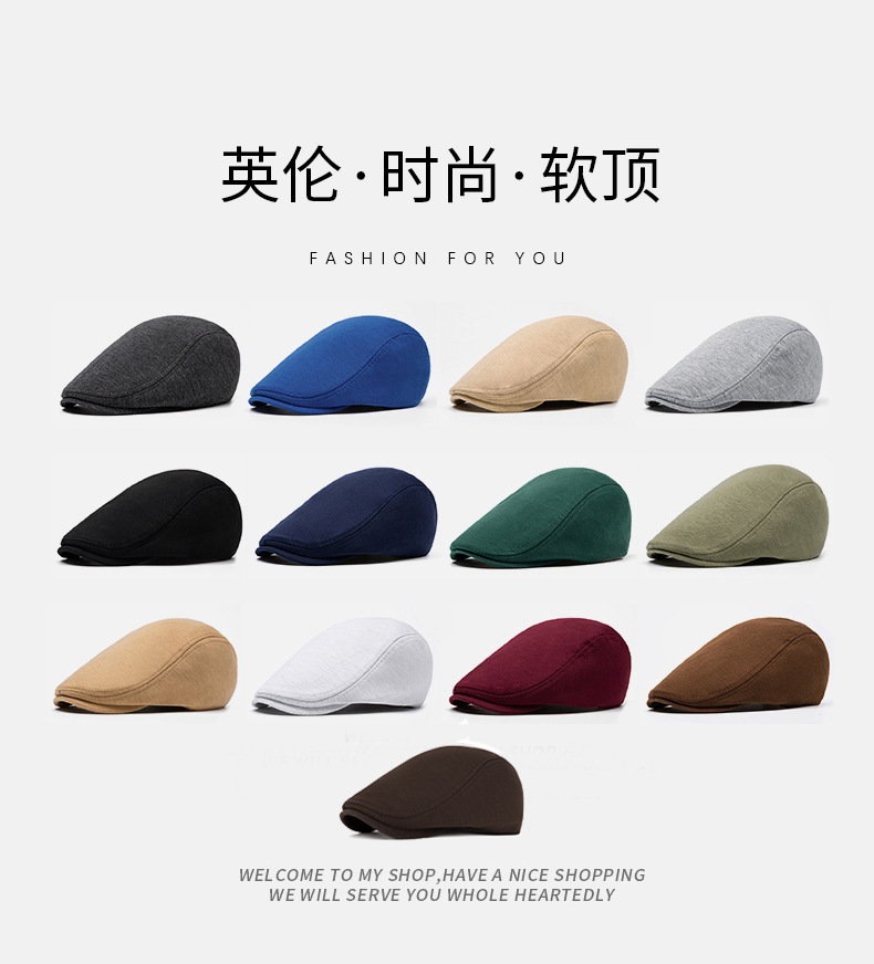 남성용 외국 무역 모자, 가을 겨울 모직 빛판 베레모, 따뜻한 앞모자, 영국식 소프트탑 신문 모자스토어 가기