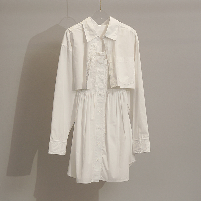 틈새 2022 새로운 투피스 화이트 셔츠 원피스 여성 슬립 원피스 독특한 짧은 치마 원피스