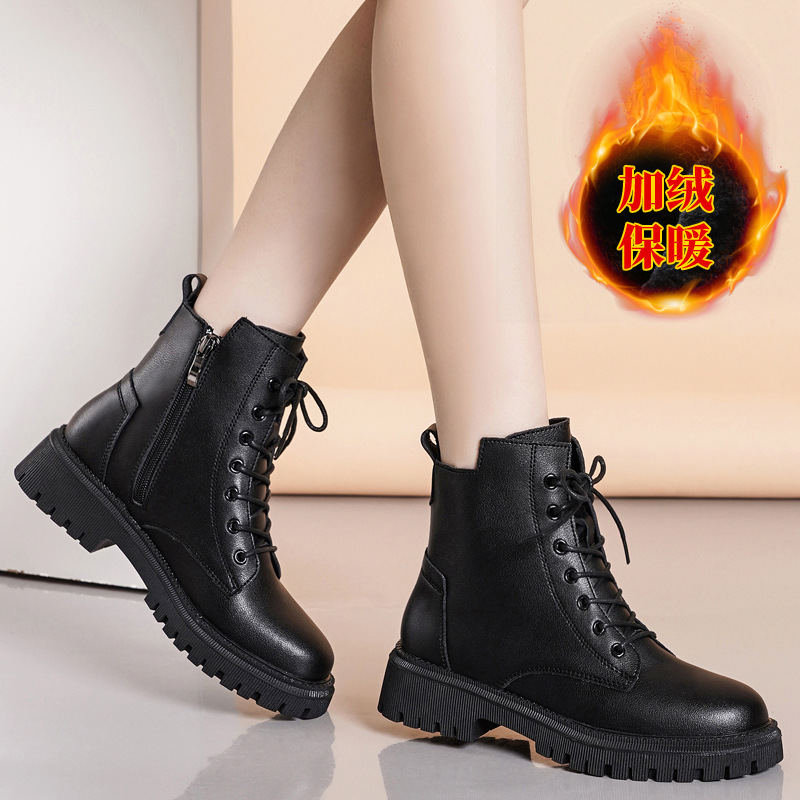 소가죽 마틴 부츠 여성용 가을과 겨울 새로운 하이탑 코튼 부츠 여성용 모든 경기 오토바이 부츠 부드러운 밑창 영국 스타일 두꺼운 밑창 짧은 부츠스토어 가기