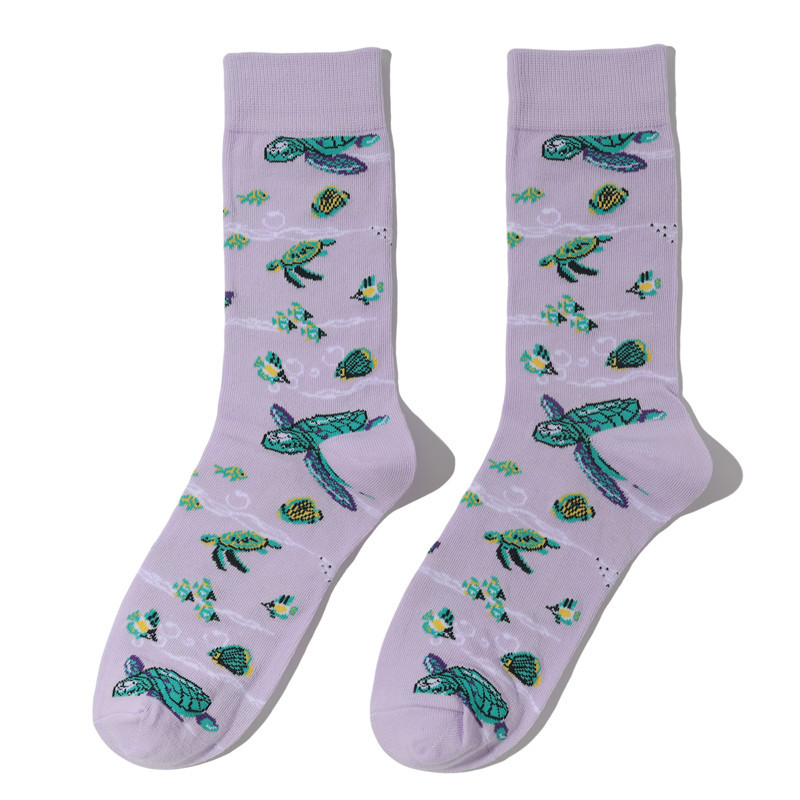 유럽과 미국 스타일 거북이 트렌디 남성 양말 남성과 여성을위한 중간 튜브 크로스 보더 동물 양말 긴 튜브 만화 면 남성 양말 버섯 식물 양말스토어 가기