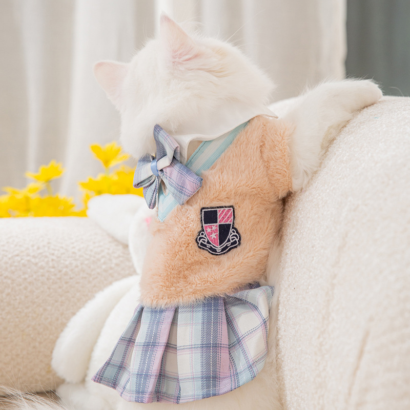 가을과 겨울 강아지 한국 대학 스타일 커플 세트 테디베어 네 발 고양이 치마 애완 동물 옷