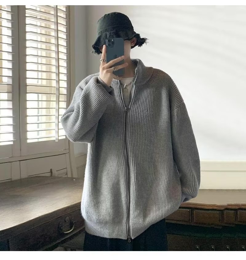 가디건 남성용 니트 셔츠 느슨한 게으른 스타일 고급 일본식 세로 목 스웨터 2022 새로운 가을과 겨울 두꺼운 재킷스토어 가기