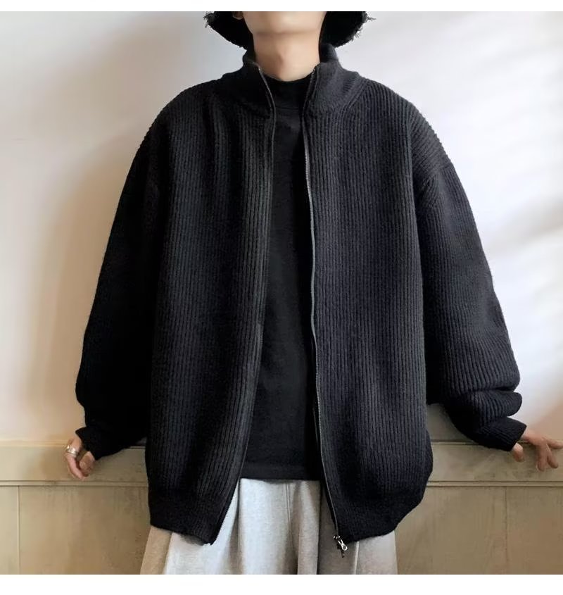 가디건 남성용 니트 셔츠 느슨한 게으른 스타일 고급 일본식 세로 목 스웨터 2022 새로운 가을과 겨울 두꺼운 재킷
