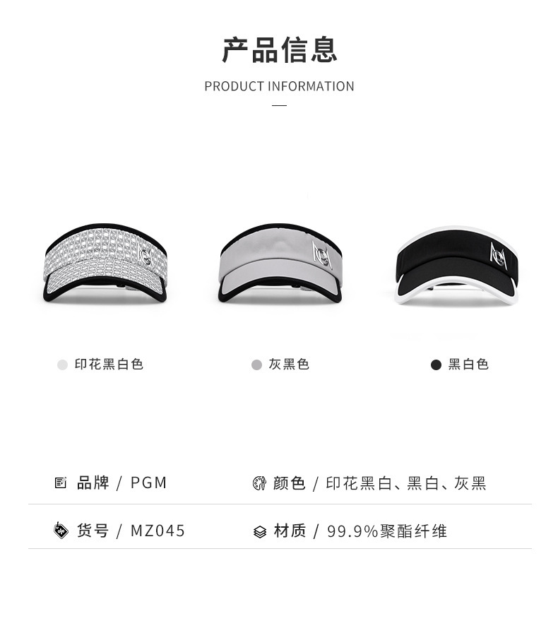 名 称高尔夫男士无顶帽印花黑白色,灰黑色,黑白色