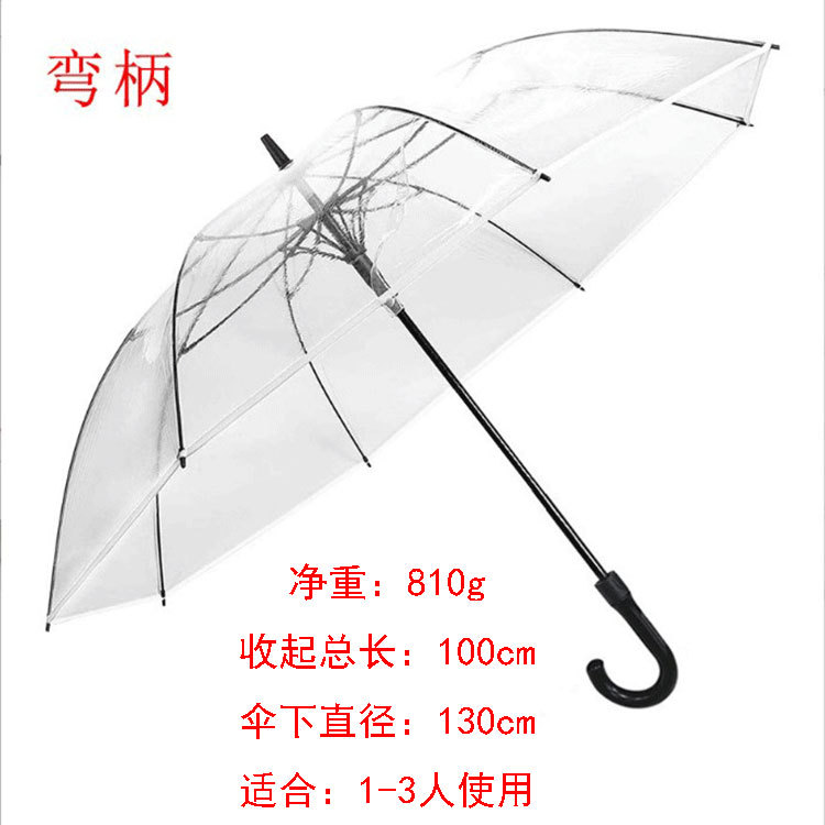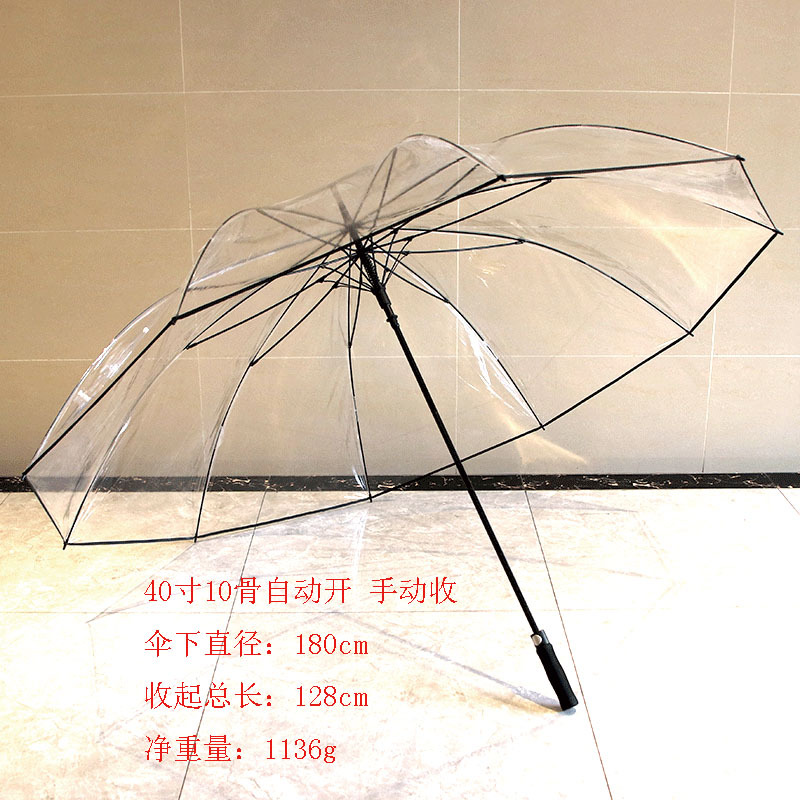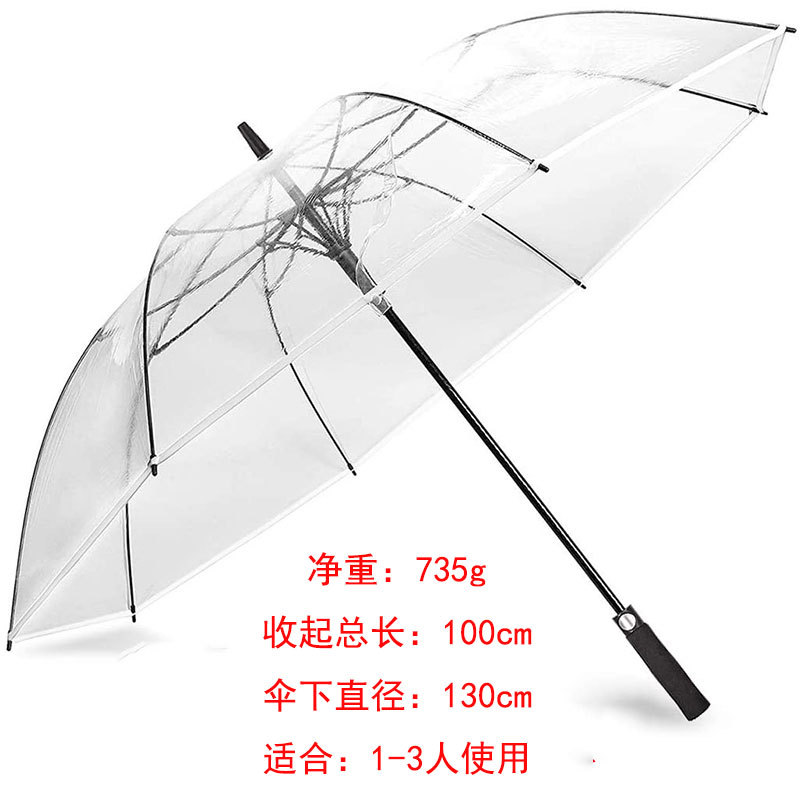 PVC 흰색 투명 우산 긴 손잡이 고급스러운 느낌 40inch 풀 파이버 골프 투명 우산 좋은 품질 도매스토어 가기