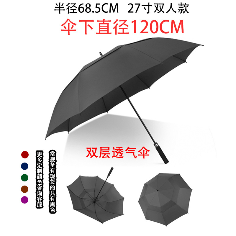 27 인치 골프 우산 맞춤 광고 우산 도매 대형 스트레이트 로드 통기성 우산 이중 목적 더블 레이어 긴 손잡이 우산