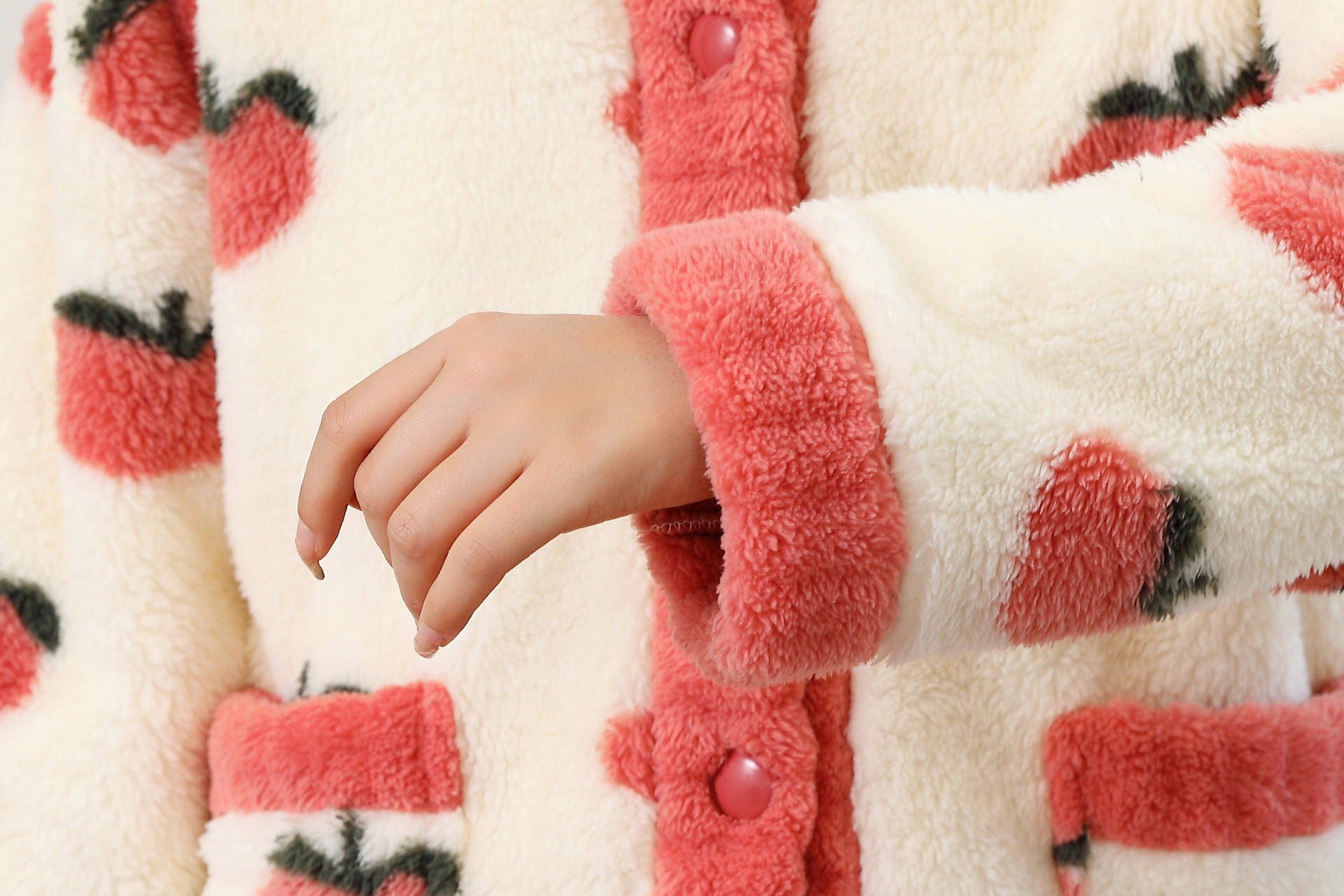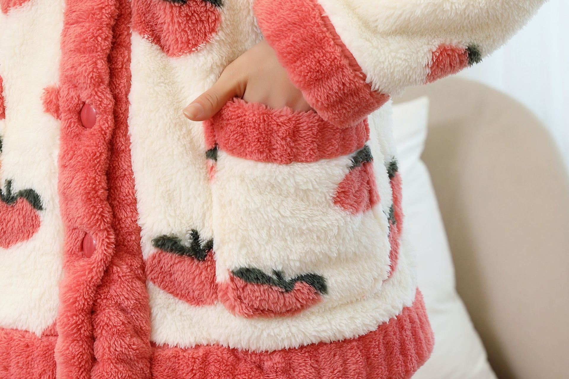 엄선된 플러시 우롱 복숭아 잠옷 여성용 겨울 루즈핏 따뜻한 복숭아 잠옷 플란넬 프린트 따뜻한 세트스토어 가기