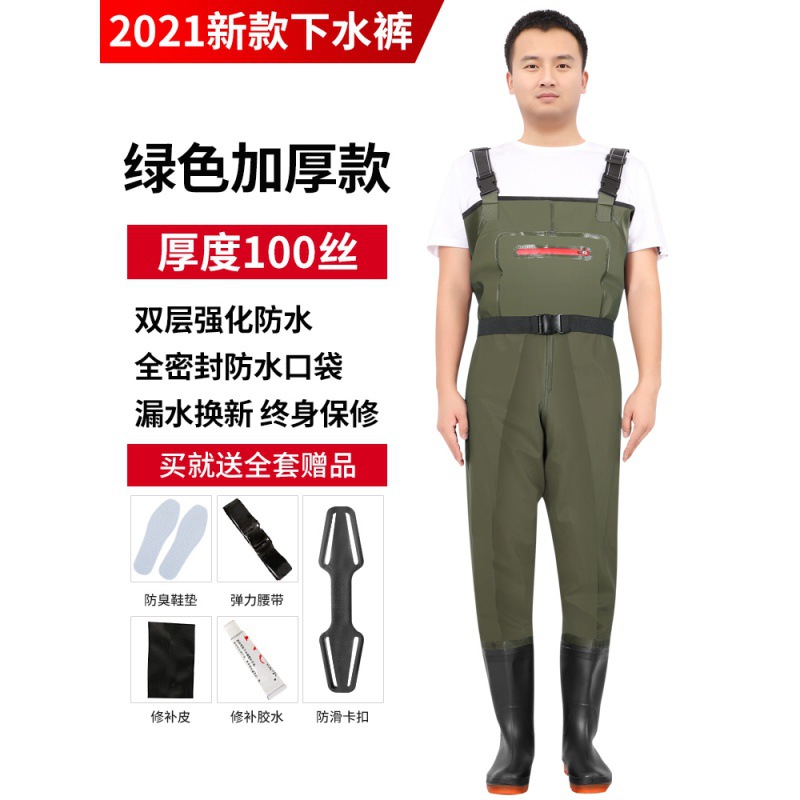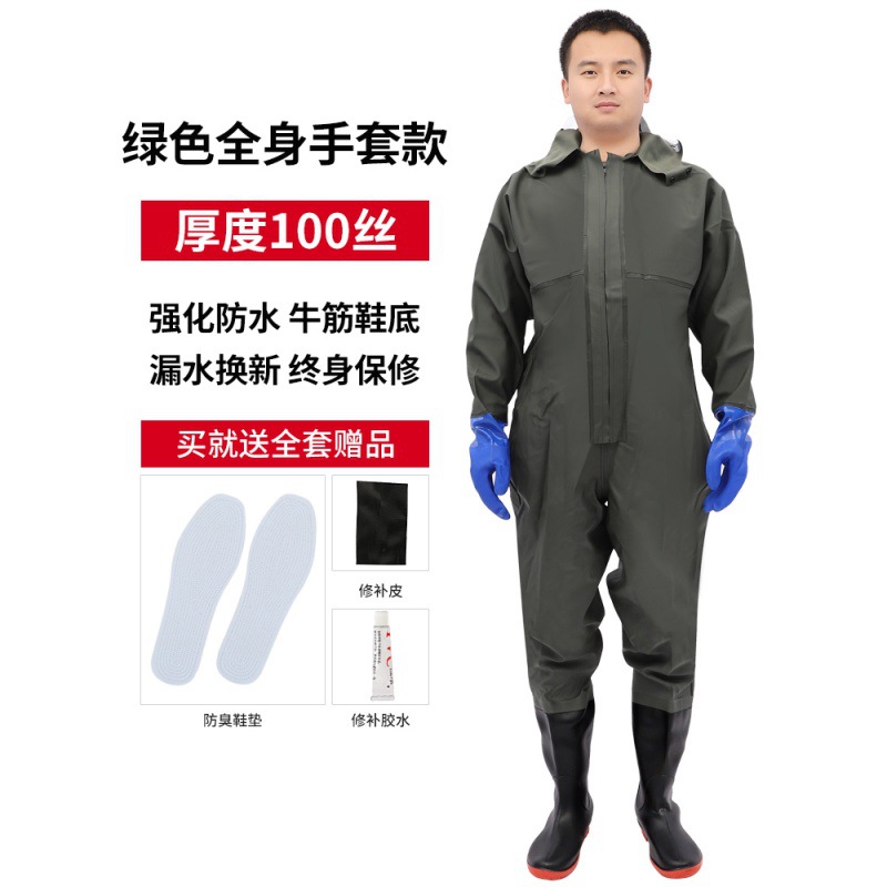 우화 반몸 방수 옷을 입은 워터 팬츠 원피스 레인 팬츠 남성용 저수지 물고기 전신 가죽 포크 워터 슈즈를 두껍게 잡습니다.스토어 가기