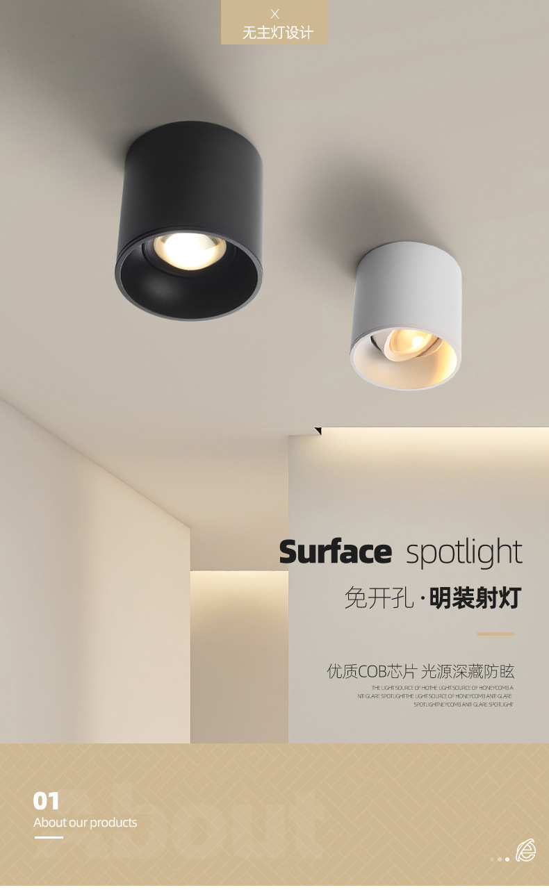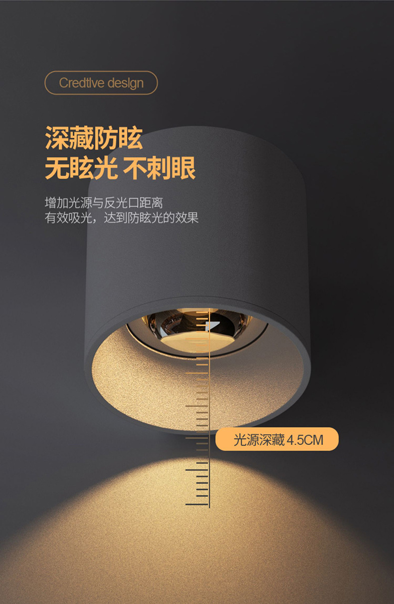작은 원형 표면 장착형 스포트라이트 LED 통 조정 가능한 각도 천장 눈부심 방지 홈 거실 조명 럭셔리 알루미늄