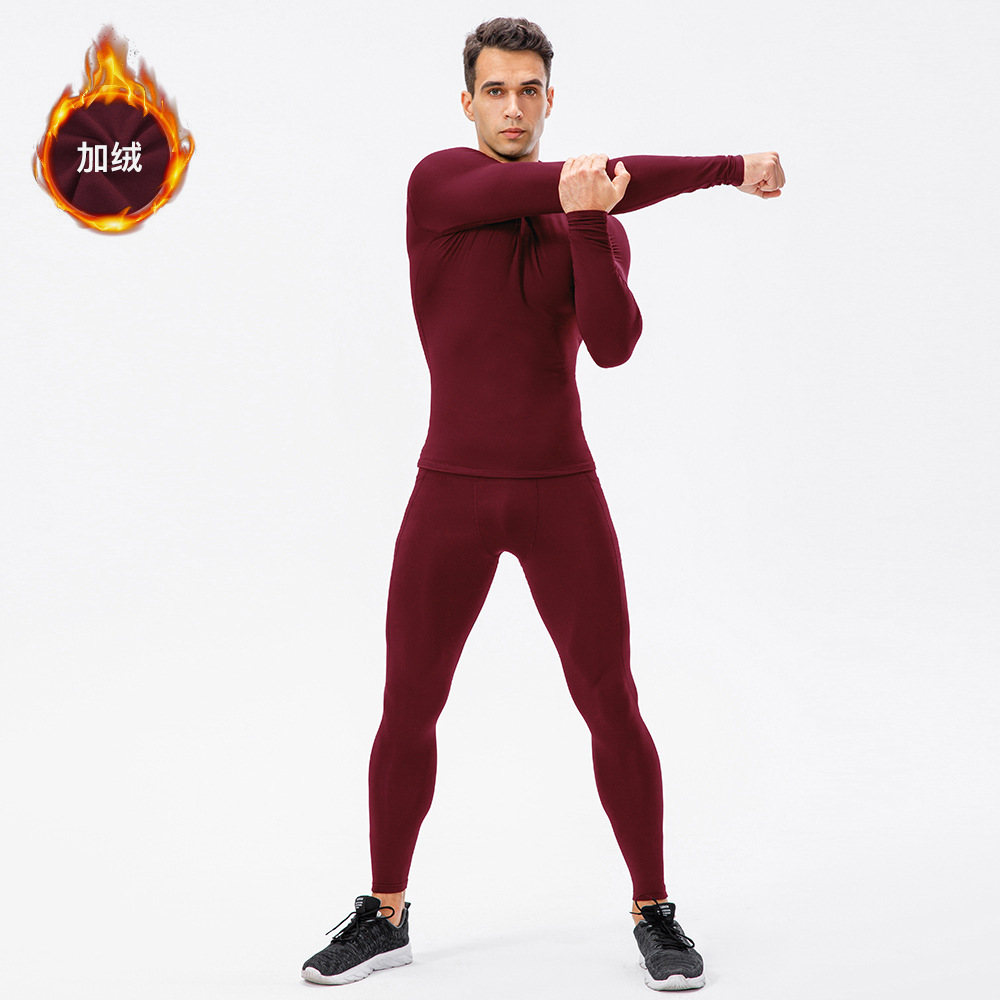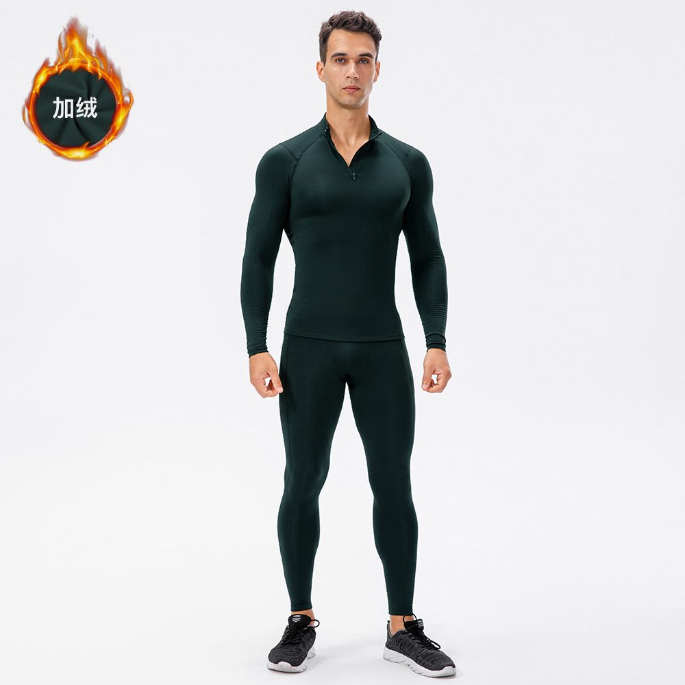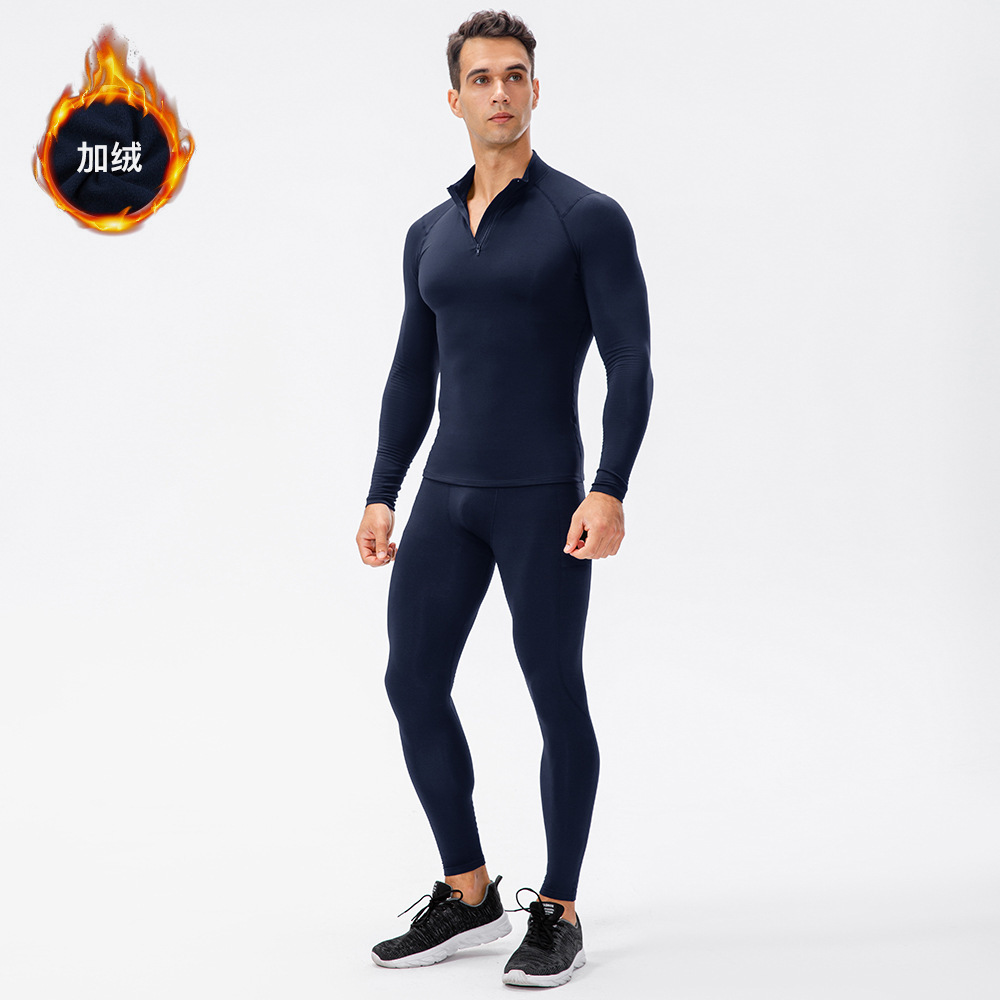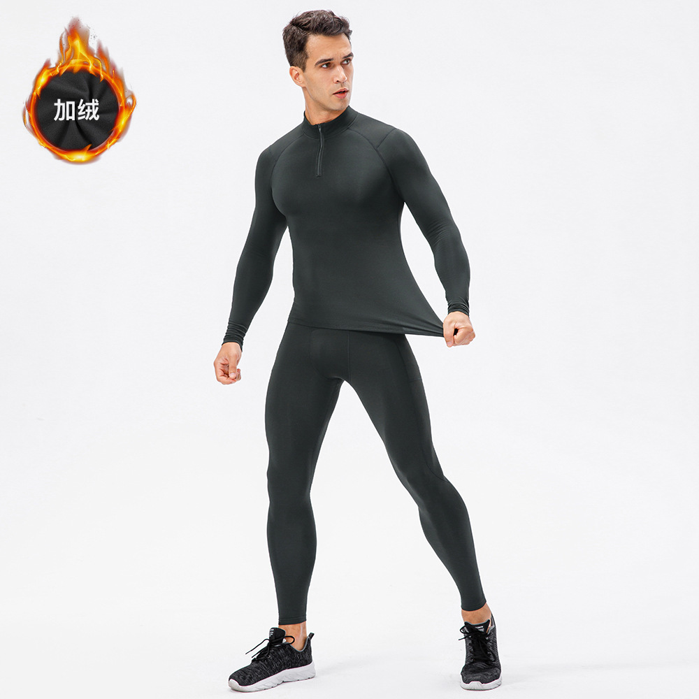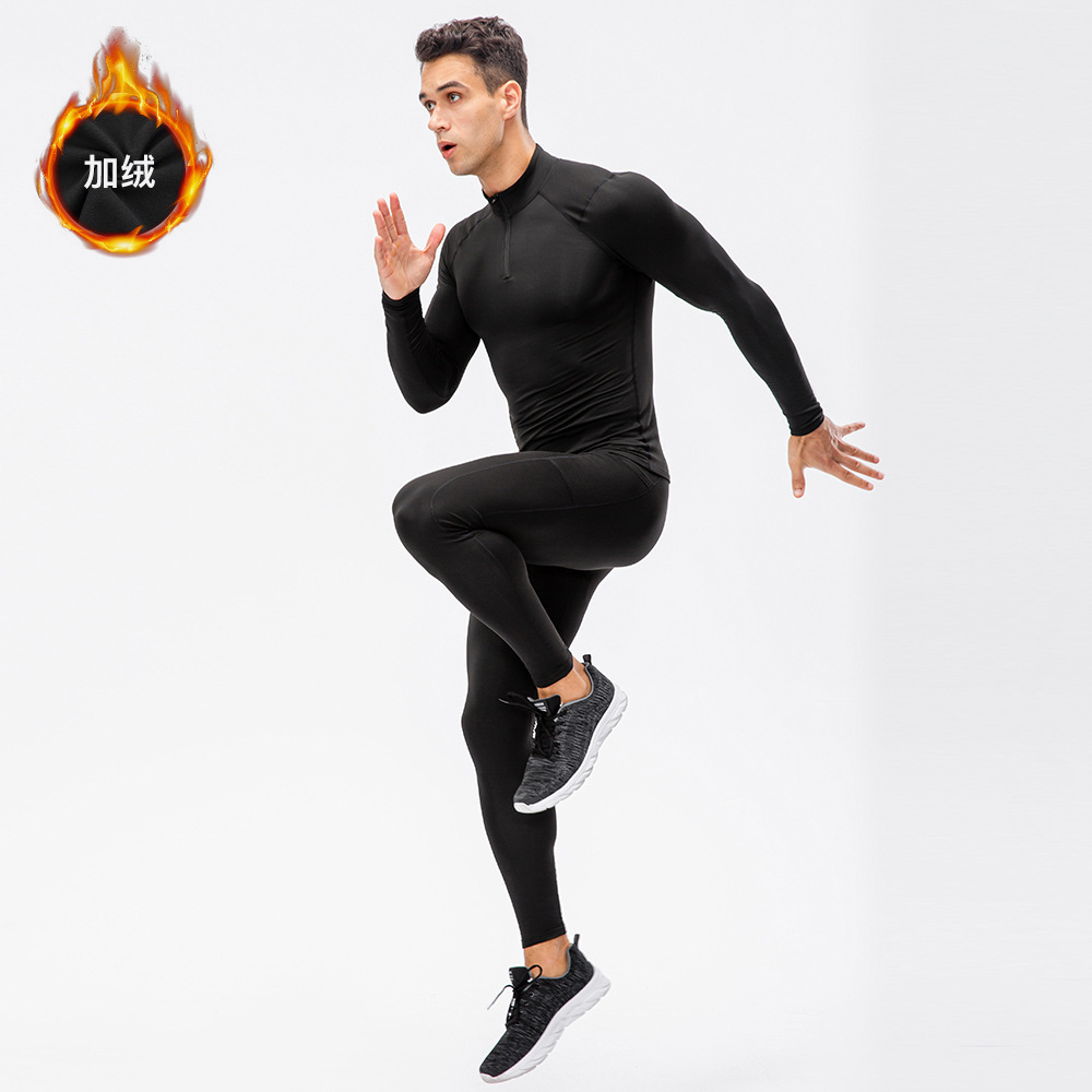 남자의 가을/겨울 기모 휘트니스 세트 지퍼 착용 긴 소매 꽉 트레이닝 바지 투피스 세트 11517 + 11326스토어 가기