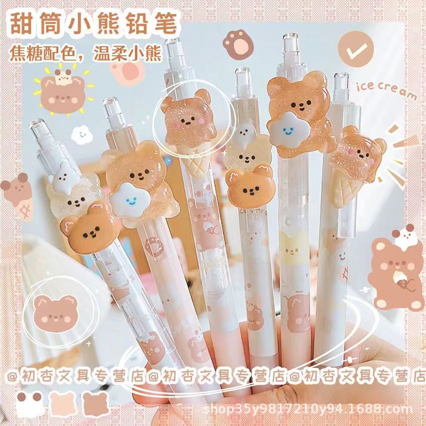 달콤한 새끼 곰 활동 연필 0.5mm 귀여운 자동 연필 학생 만화 연필 날카로운 자동 연필스토어 가기
