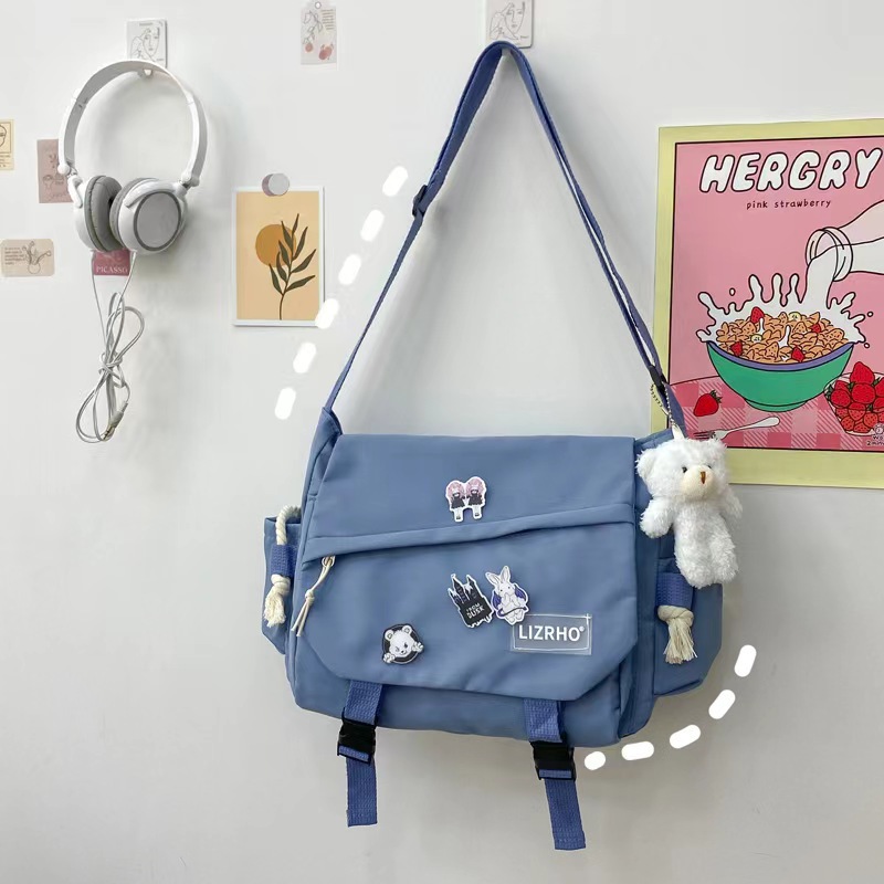 한국 스타일 Ins 스타일 대용량 어깨 가방 일본식 하라주쿠 빈티지 툴링 스타일 메신저 백 학생 나일론 크로스 바디 백