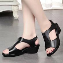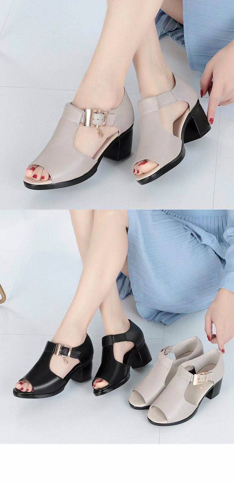 여성을위한 대외 무역 샌들 2025 새로운 두꺼운 굽 중간 굽 여성 신발 중년 어머니 신발 여성을위한 버클 스트랩 피쉬 입 샌들 여름스토어 가기