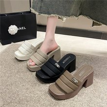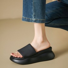 2024夏季新款时尚沙滩鞋圆头一字凉拖松糕厚底增高凉鞋面包拖鞋女