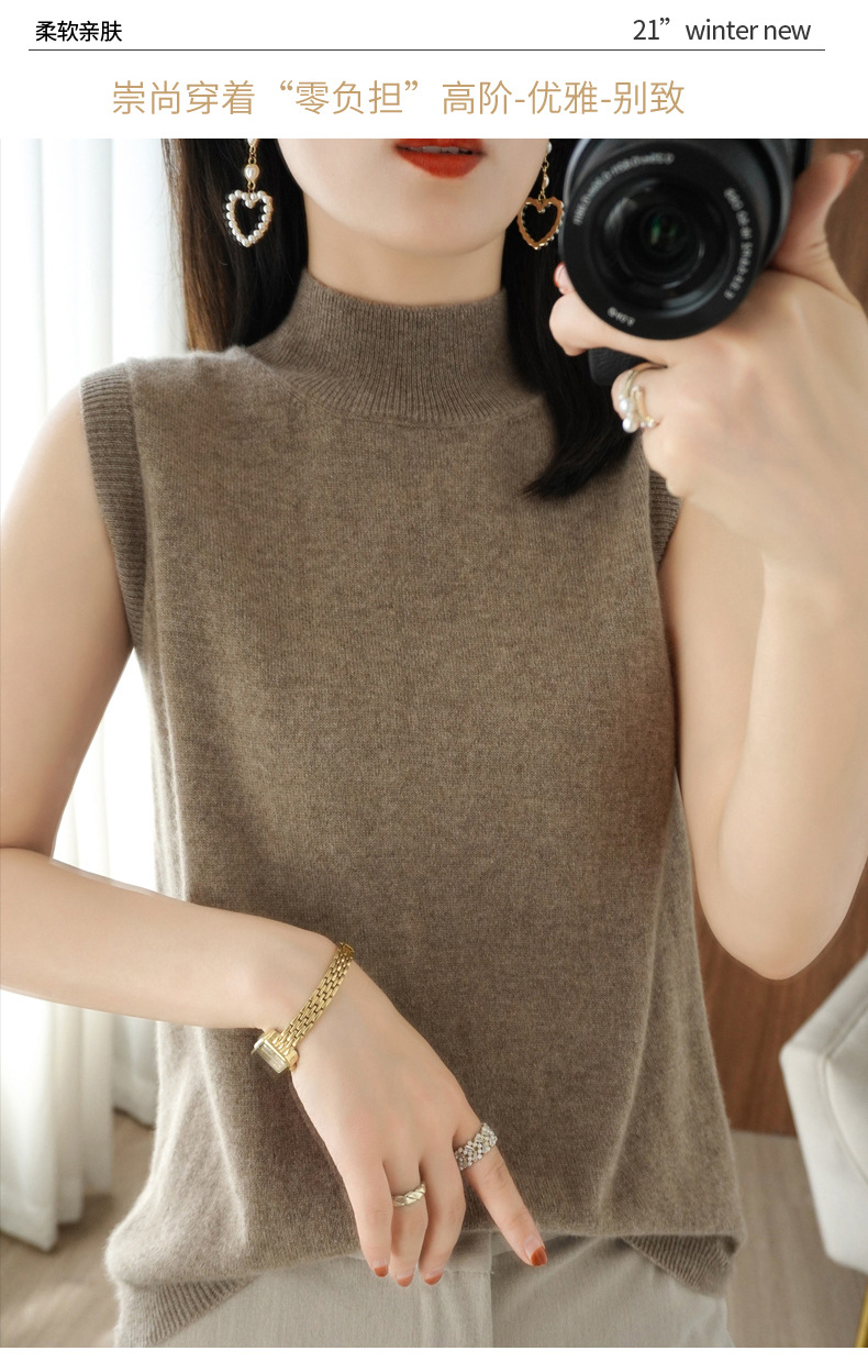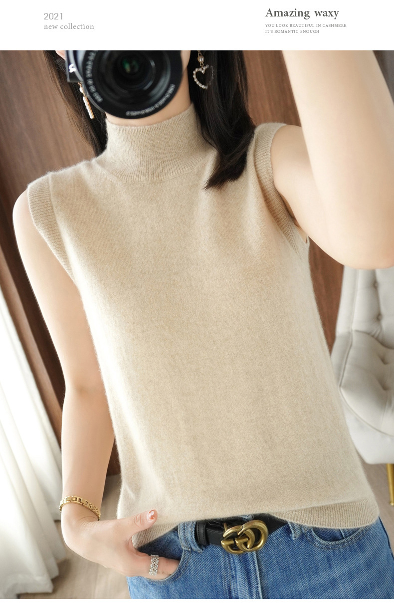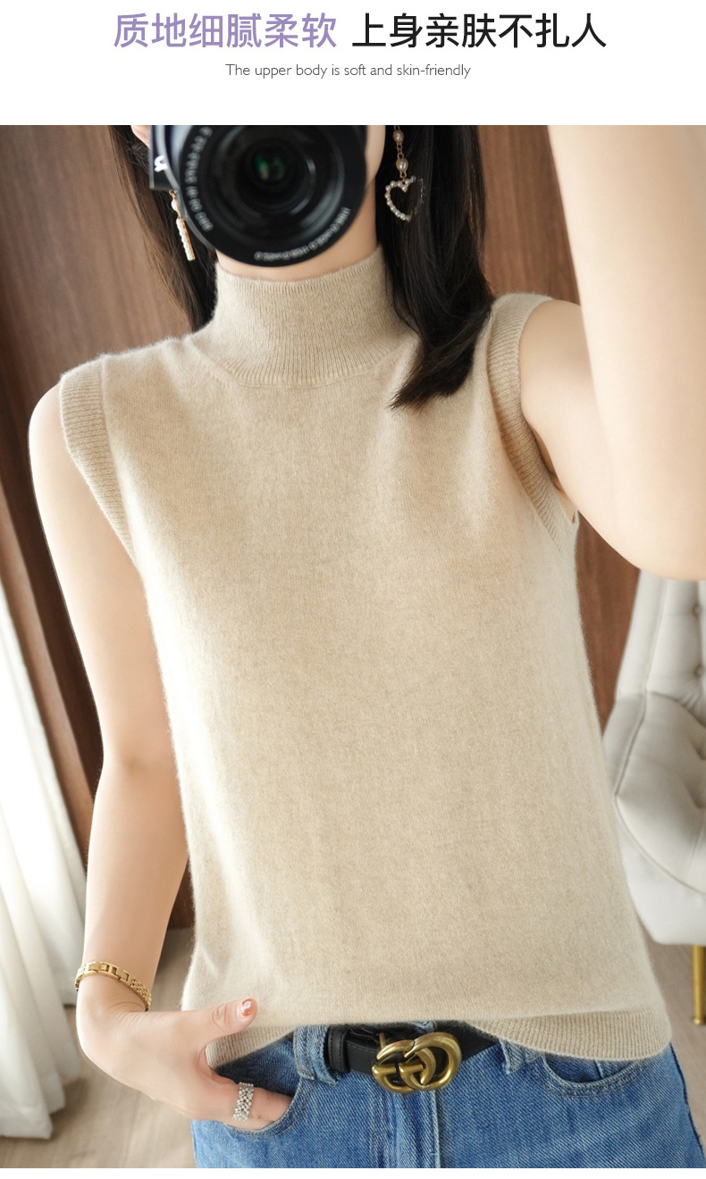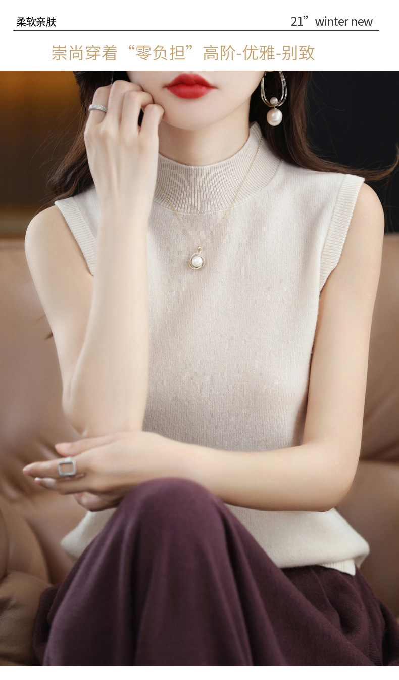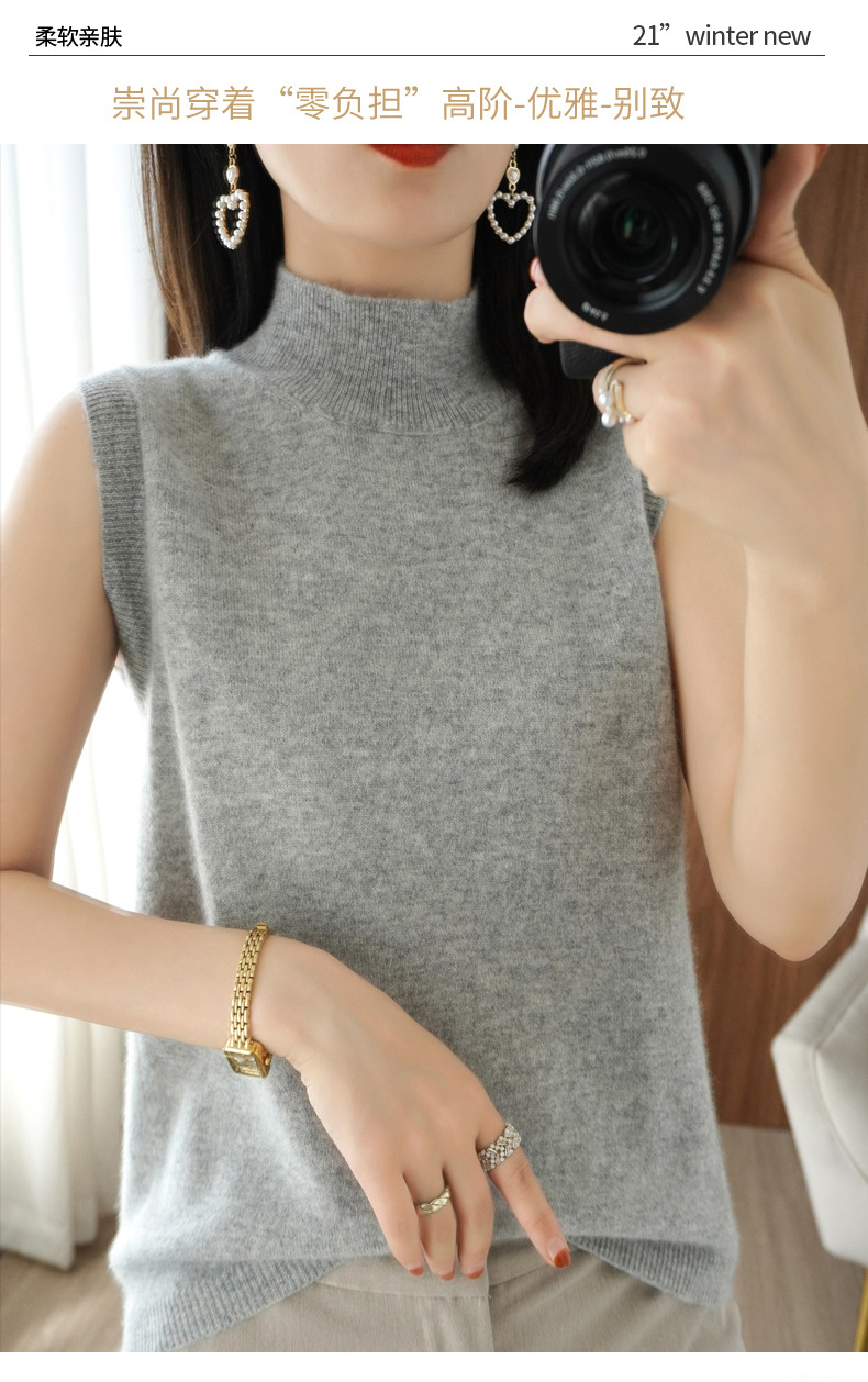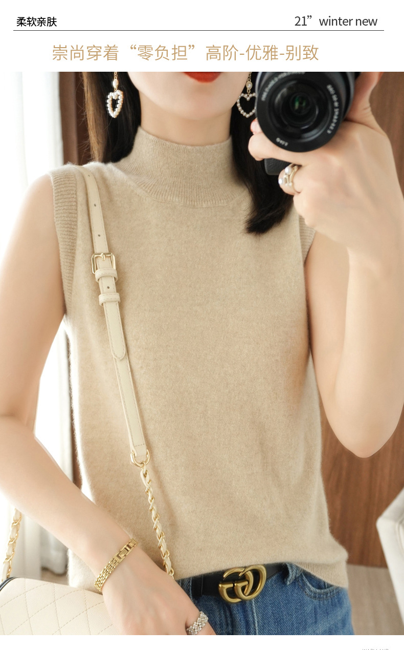 가을 2022 새로운 반 높이 목베이스 셔츠 여성용 슬림핏 민소매 스웨터 조끼 탑스토어 가기