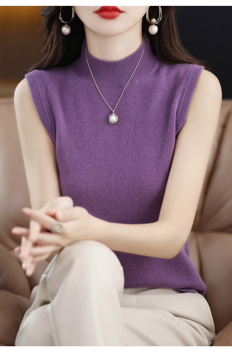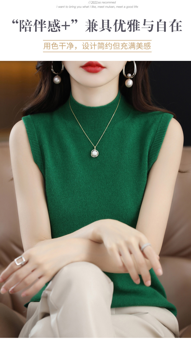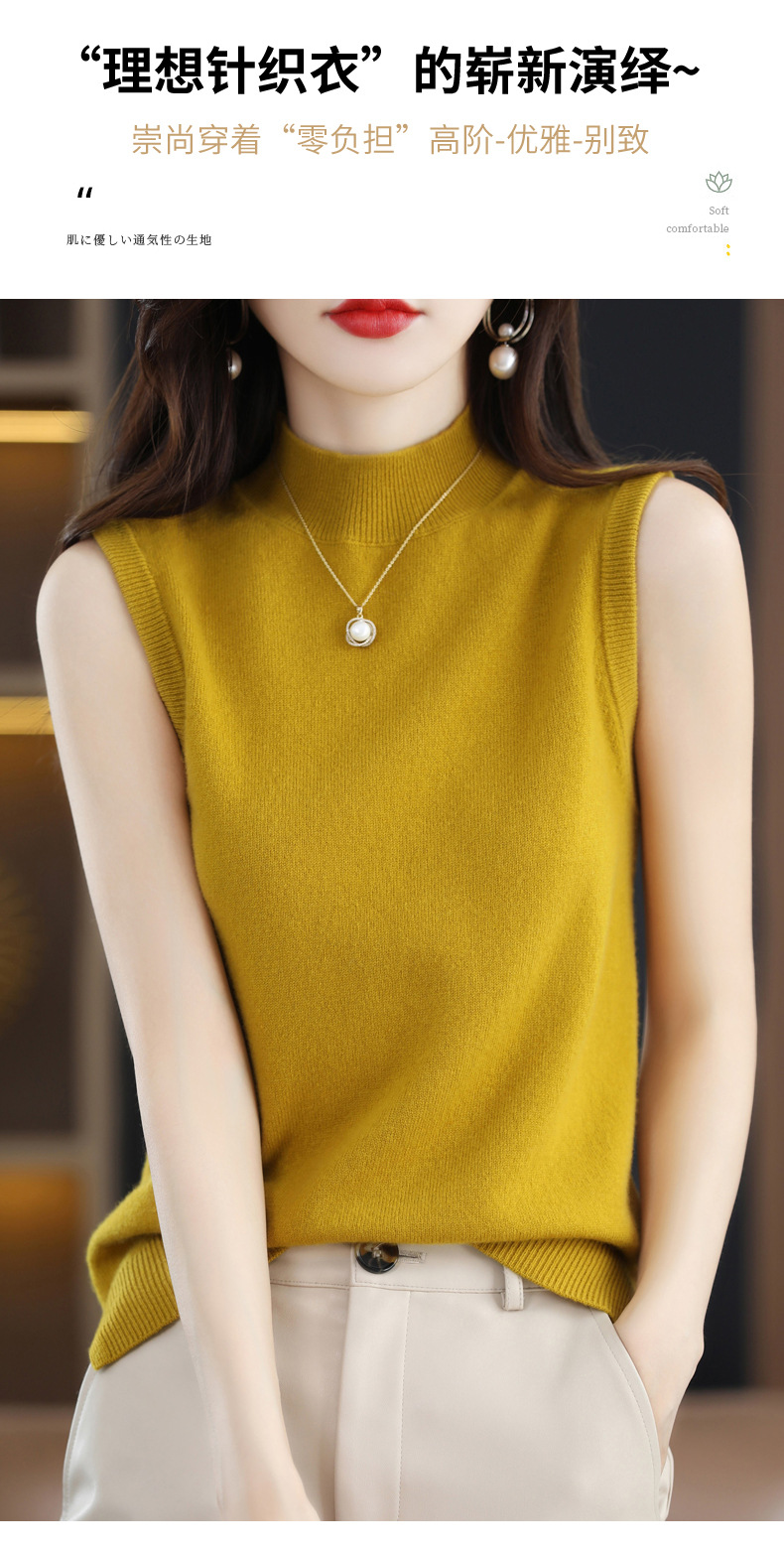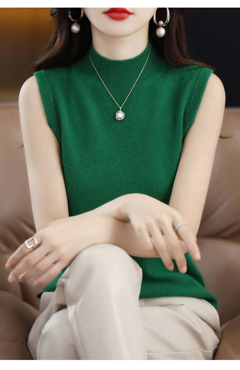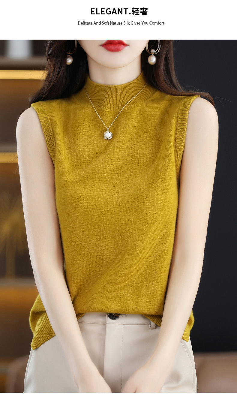 가을 2022 새로운 반 높이 목베이스 셔츠 여성용 슬림핏 민소매 스웨터 조끼 탑스토어 가기