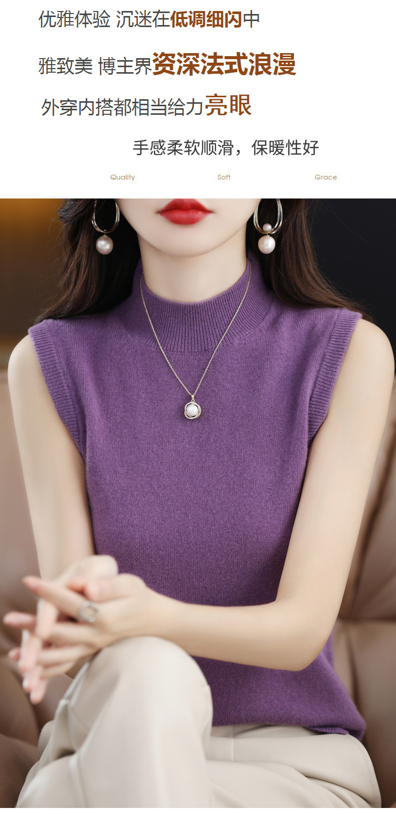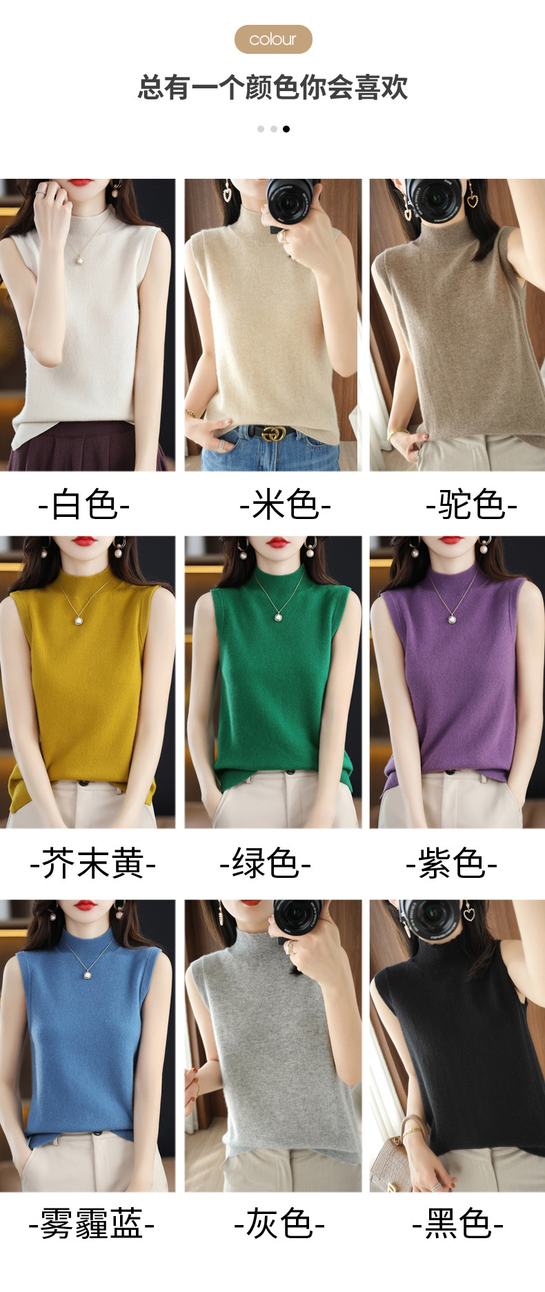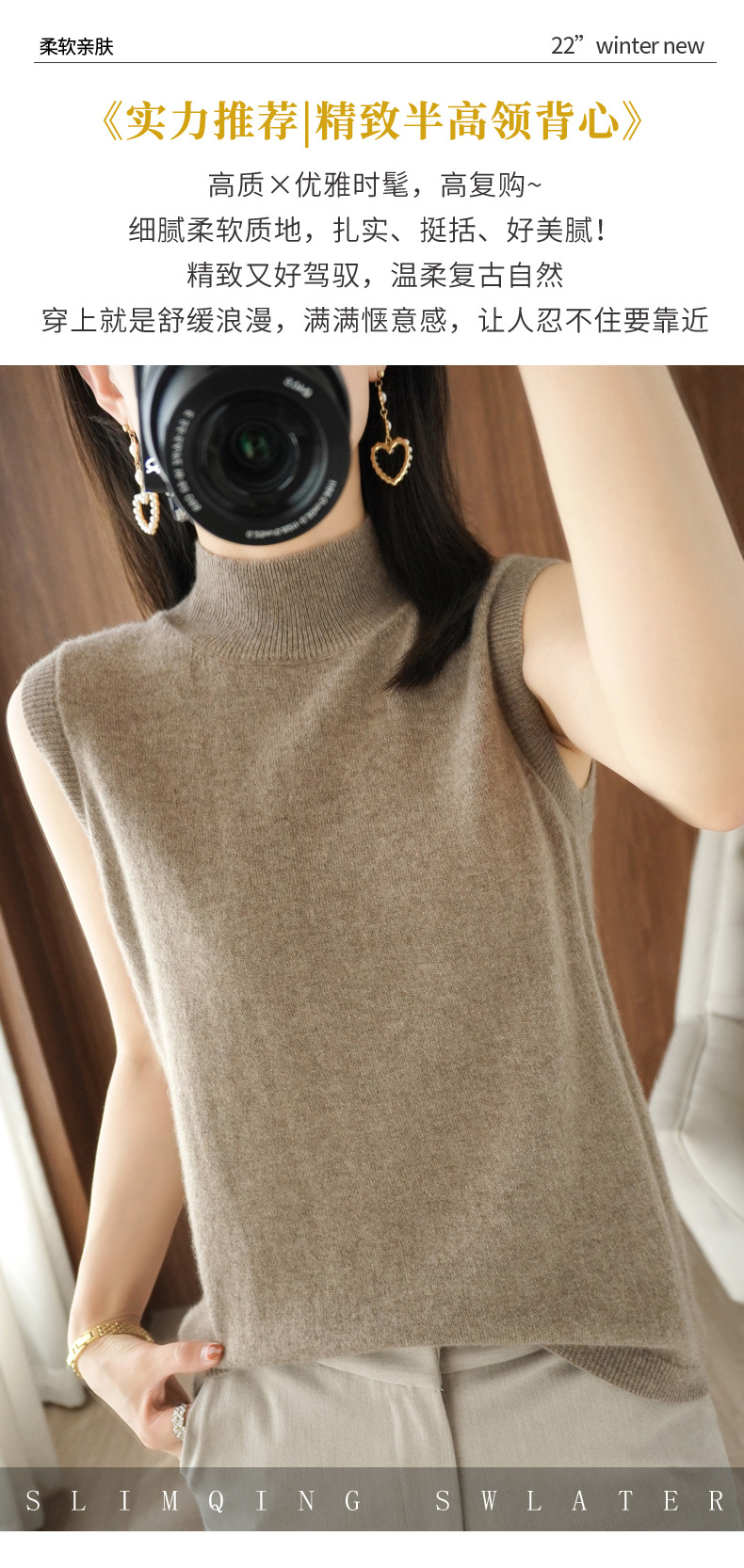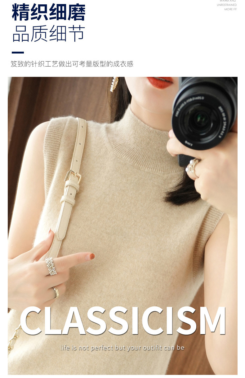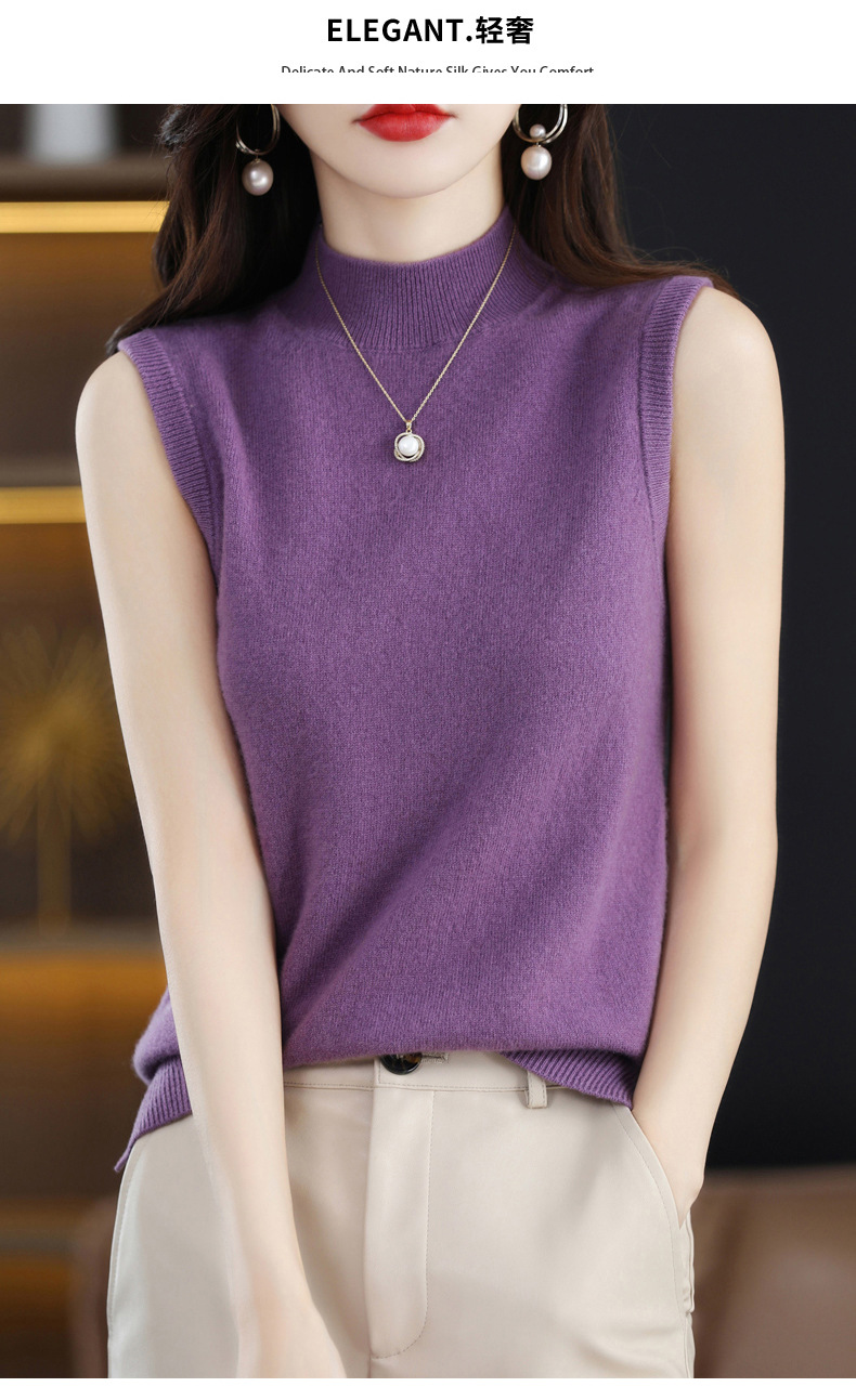 가을 2022 새로운 반 높이 목베이스 셔츠 여성용 슬림핏 민소매 스웨터 조끼 탑스토어 가기