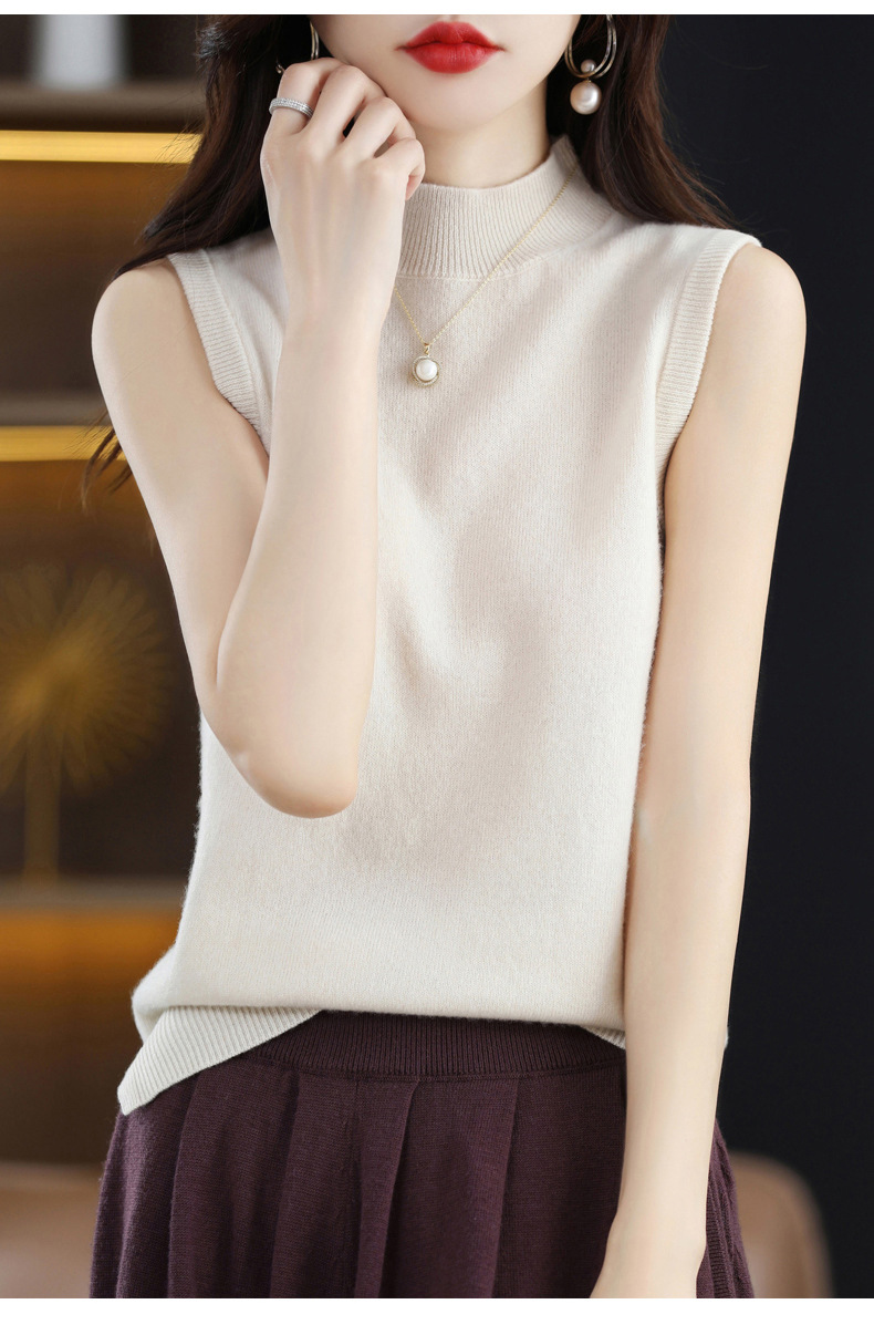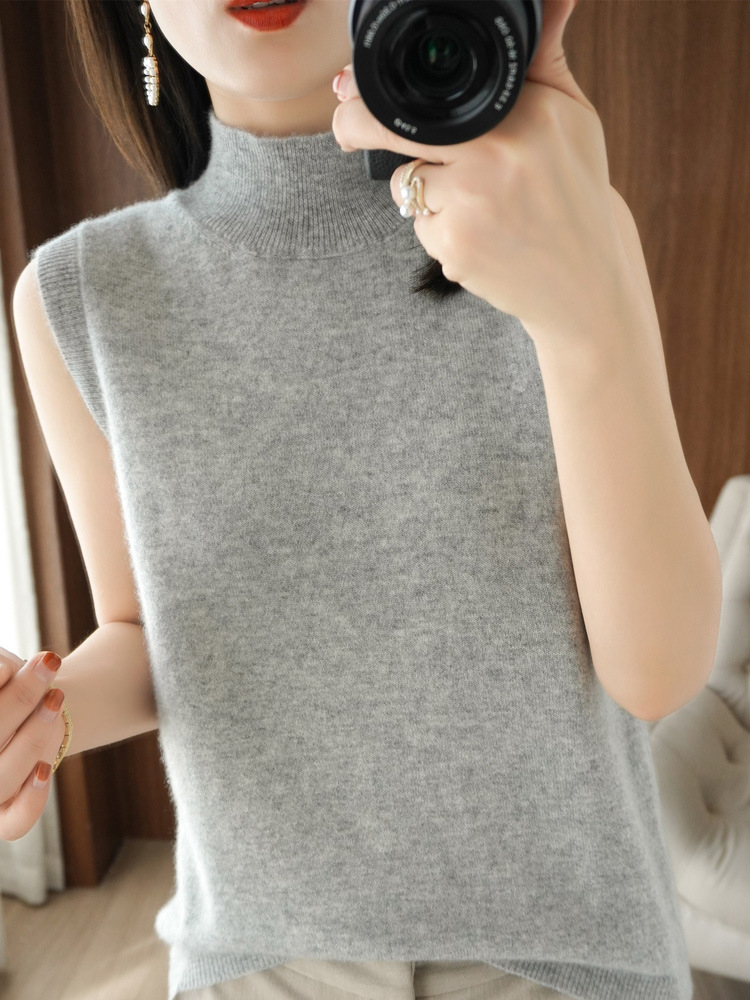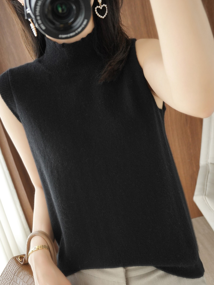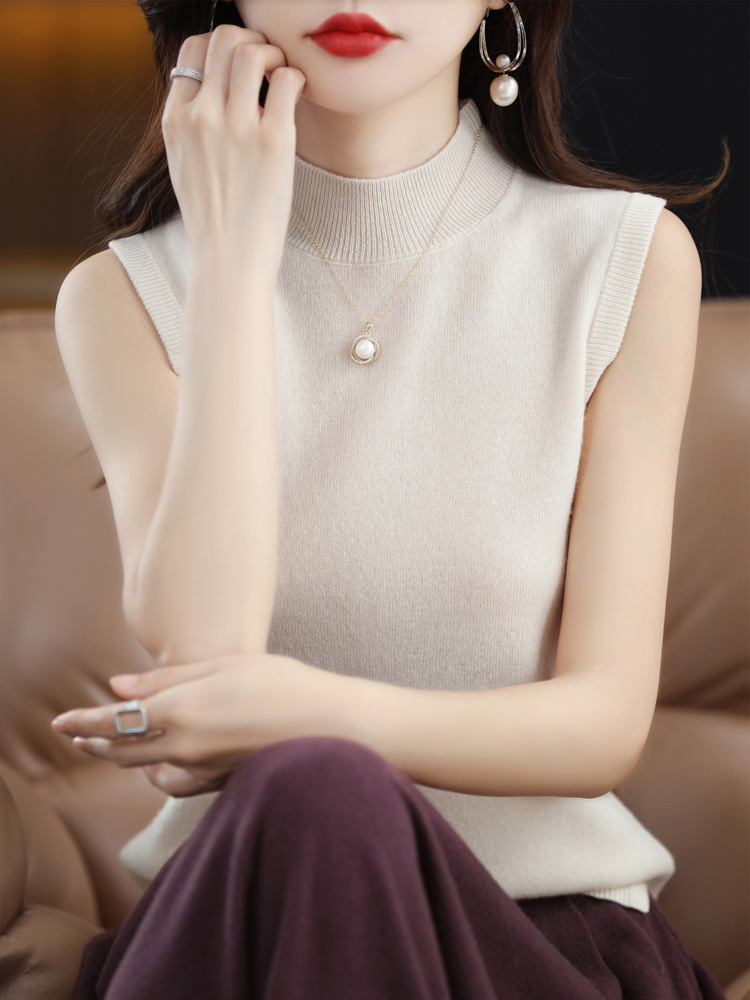 가을 2022 새로운 반 높이 목베이스 셔츠 여성용 슬림핏 민소매 스웨터 조끼 탑
