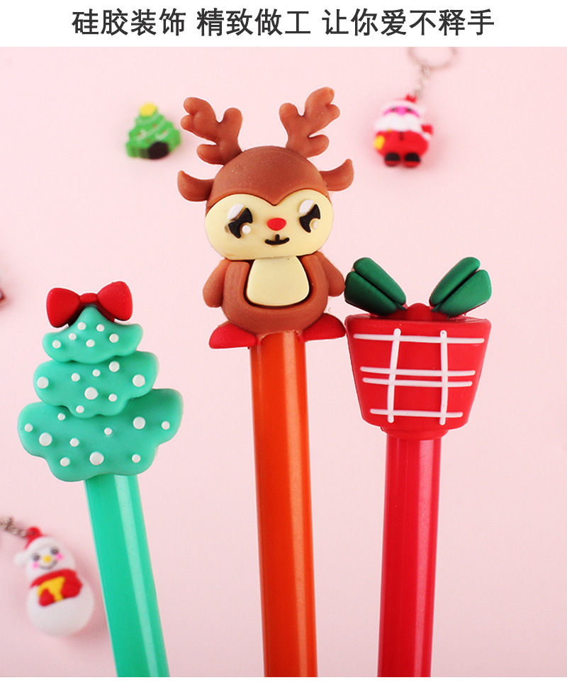 만화 크리스마스 입체 젤 펜 전체 바늘 부드러운 수성 젤 펜 블랙 리필 크리스마스 오래된 동물스토어 가기