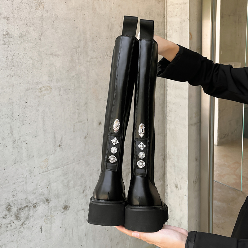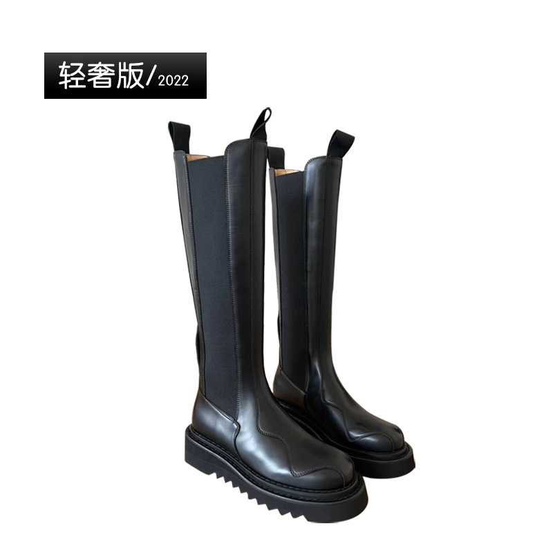 재고 기사 부츠 부츠 여자의 2023 새로운 높은 튜브 연기 튜브 첼시 부츠 두꺼운 바닥 부츠 두꺼운 다리