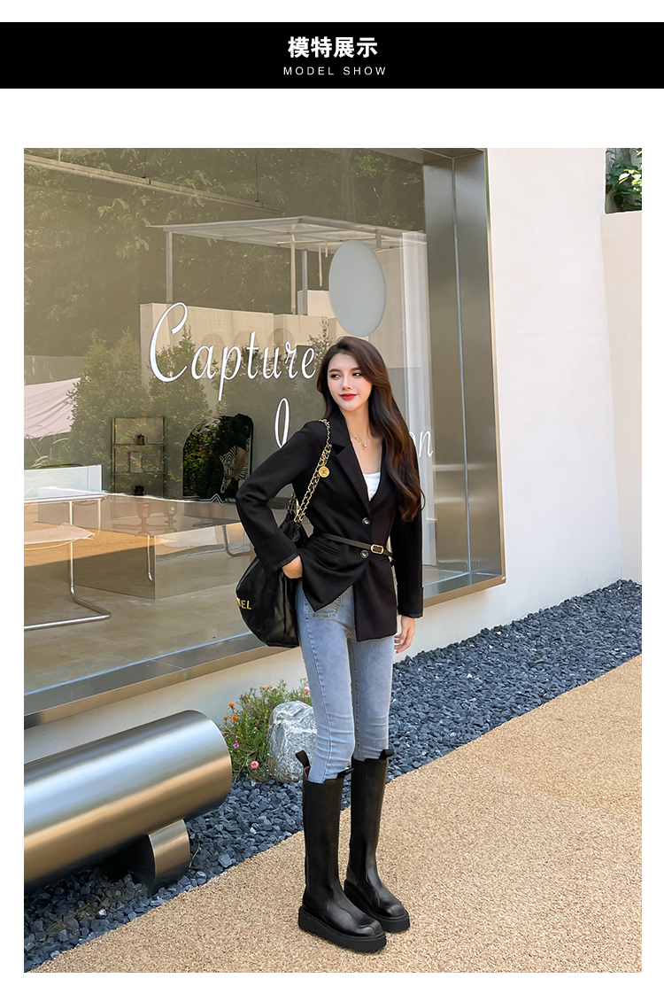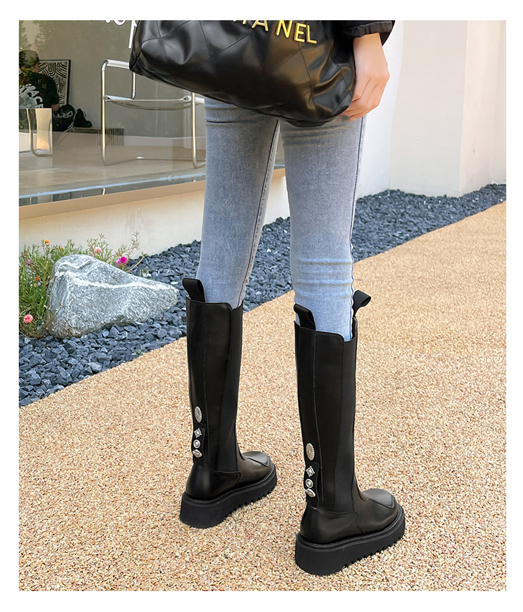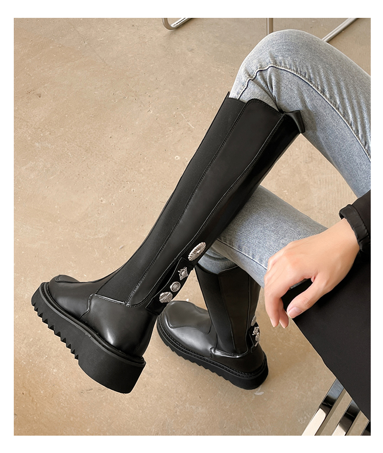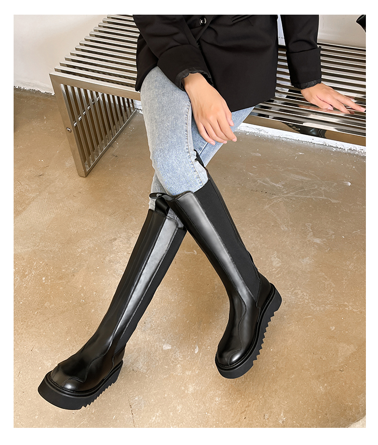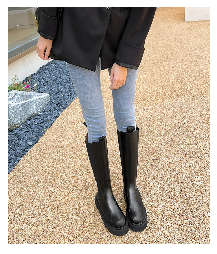 재고 기사 부츠 부츠 여자의 2023 새로운 높은 튜브 연기 튜브 첼시 부츠 두꺼운 바닥 부츠 두꺼운 다리스토어 가기