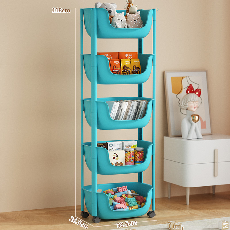 트롤리 보관 랙 휠 책장 가정용 욕실 주방 야채 바닥 마감 랙이있는 어린이 장난감 보관 랙